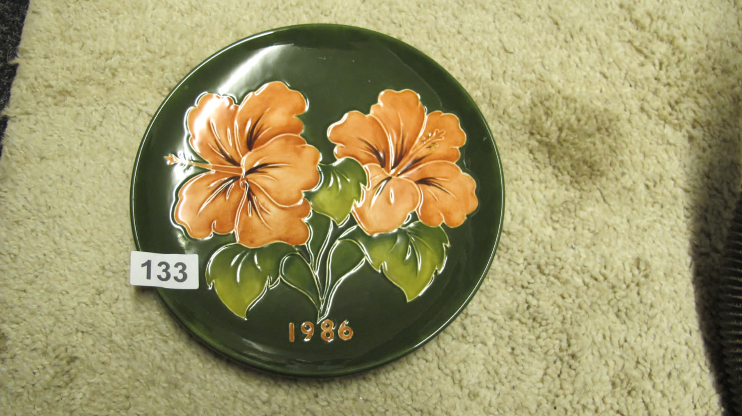 Moorcroft Hibiscus 1986 year plate, 20cms