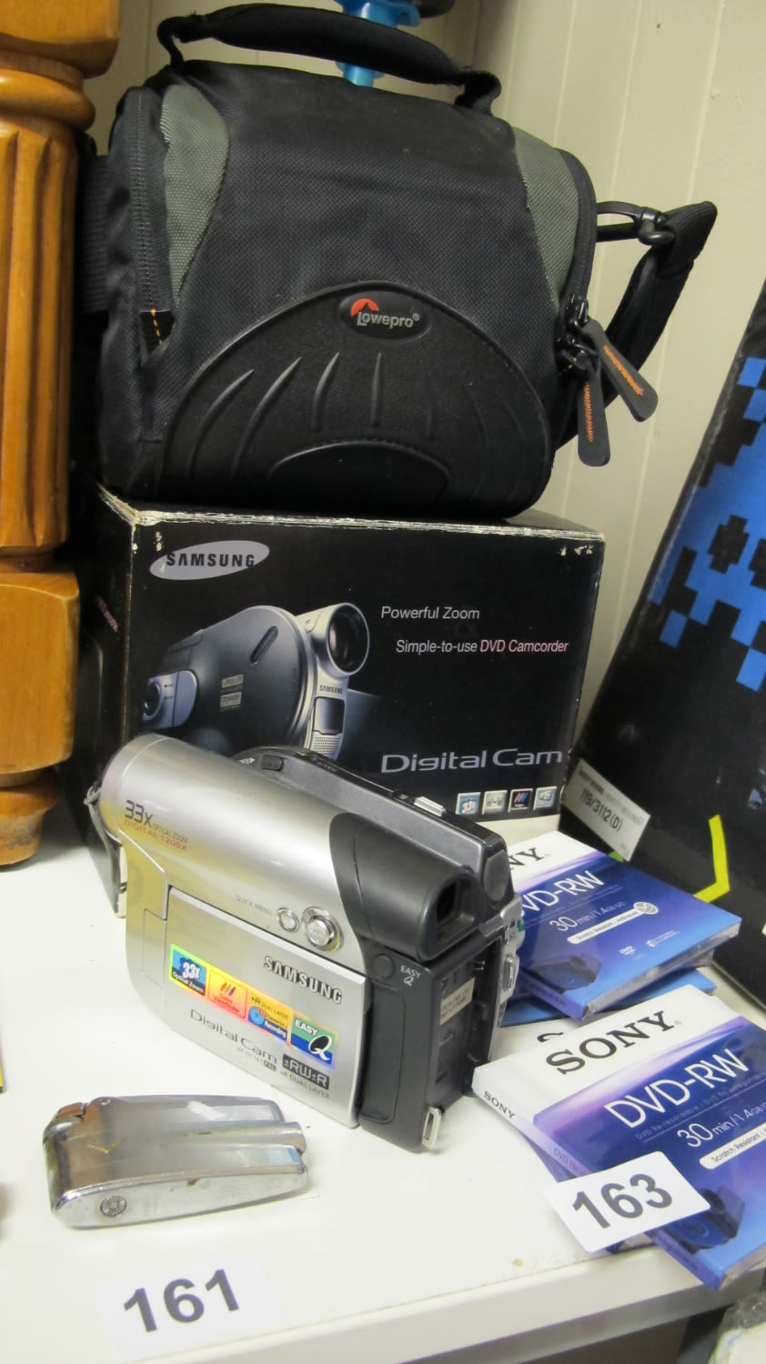 Samsung VP DC161 DVD camcorder with spare new DVD’s, accessories include spare batteries and holdall with box and packing etc
