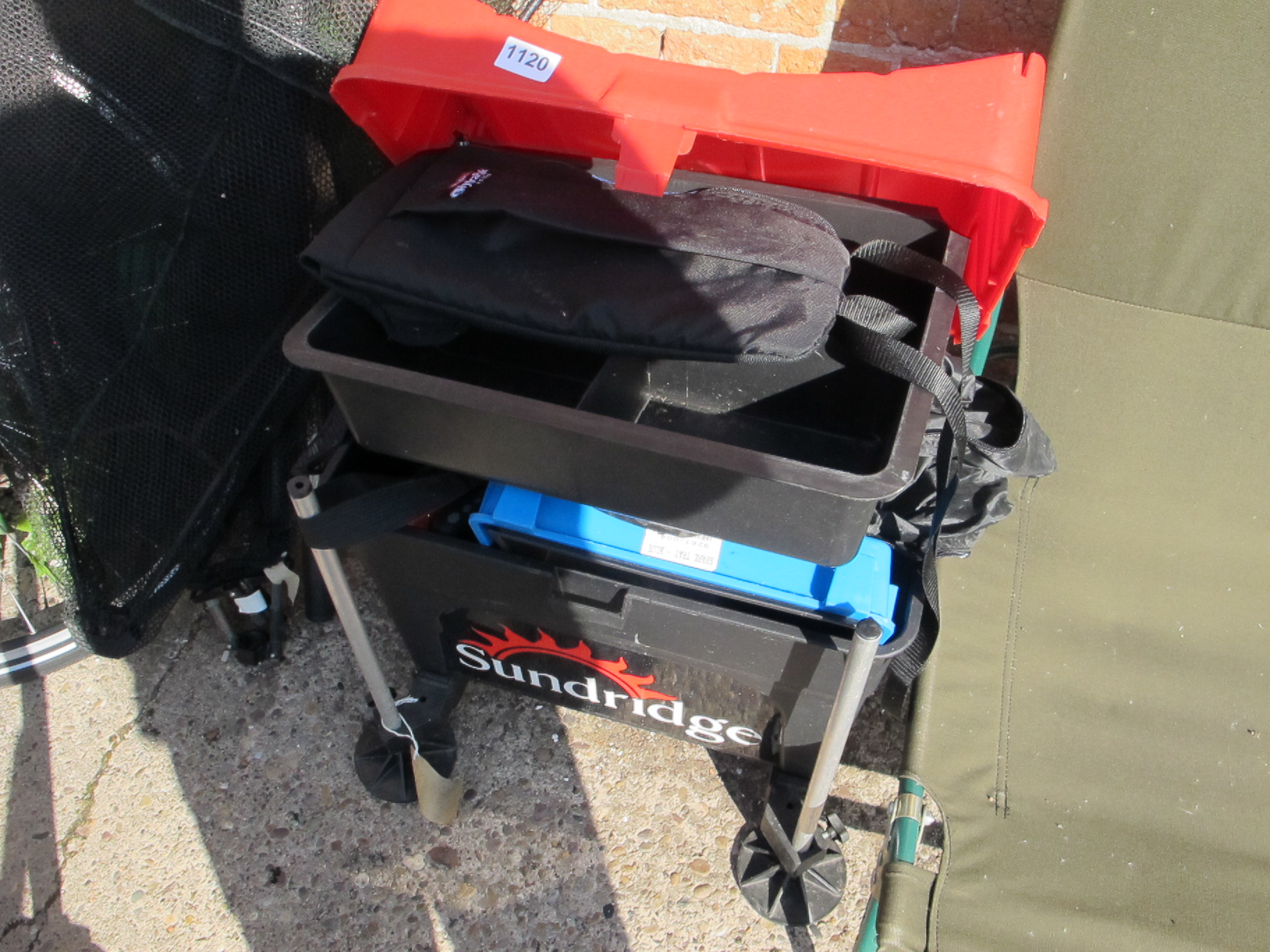 A Sundridge Fishing Tackle and Seat Box System with Savage Gear Accessory