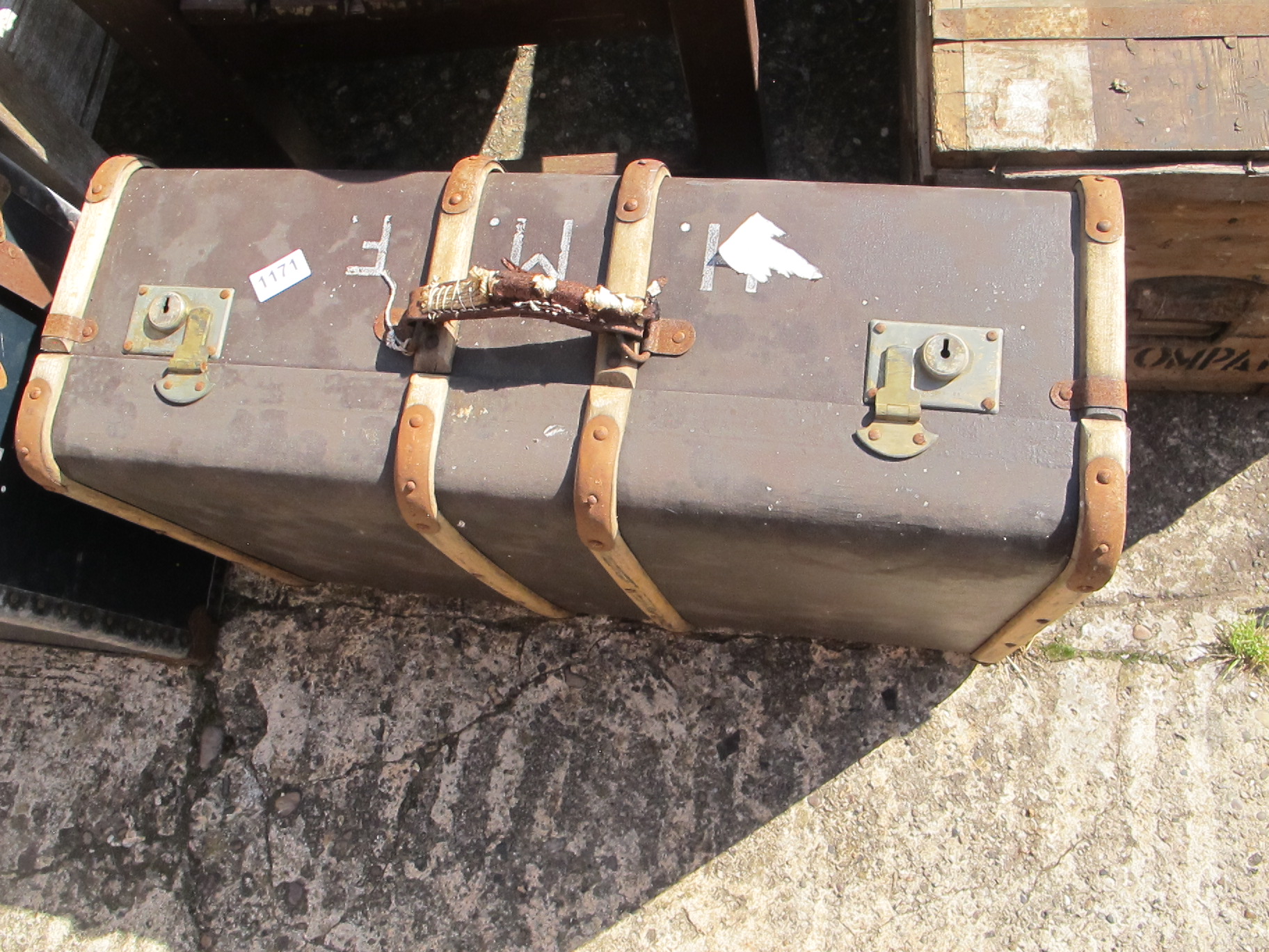 A Vintage Fiberboard and Wood-Strapped Trunk, Early to Mid-20th Century