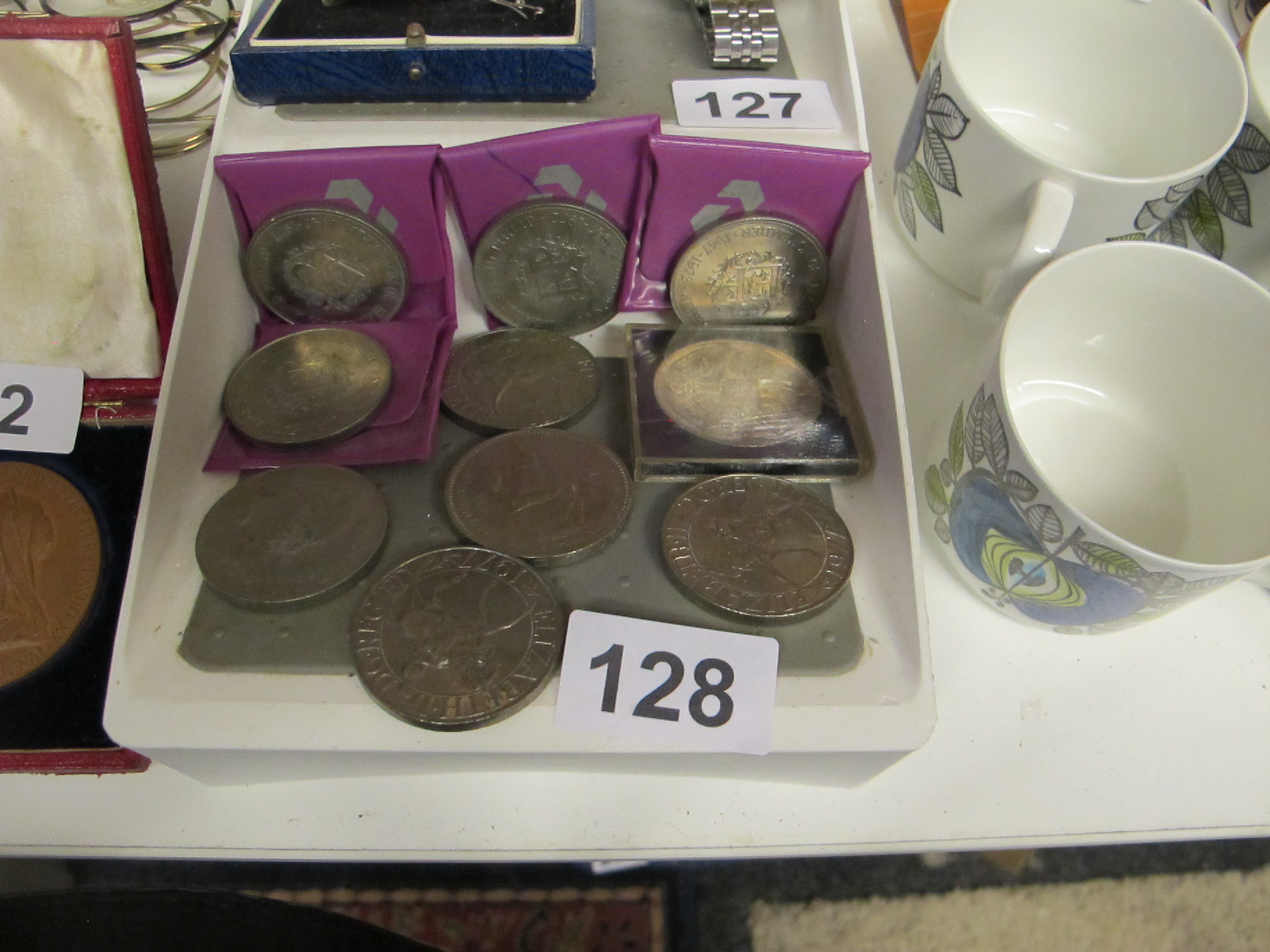 A Mixed Lot of British Commemorative Coins and Mid-Century Ceramic Wares