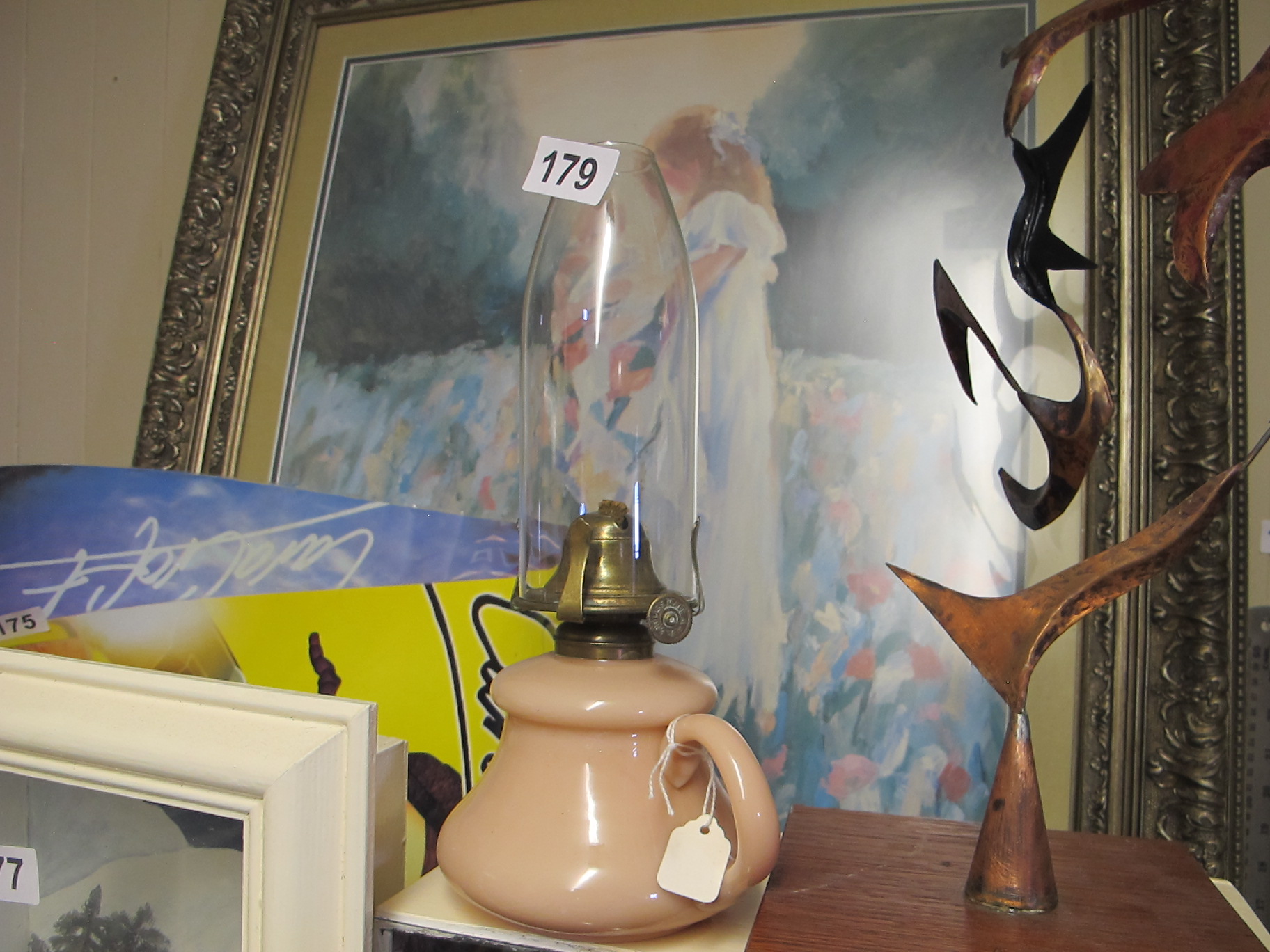 Lot 179: A Traditional Peach-Colored Glass Oil Lamp
