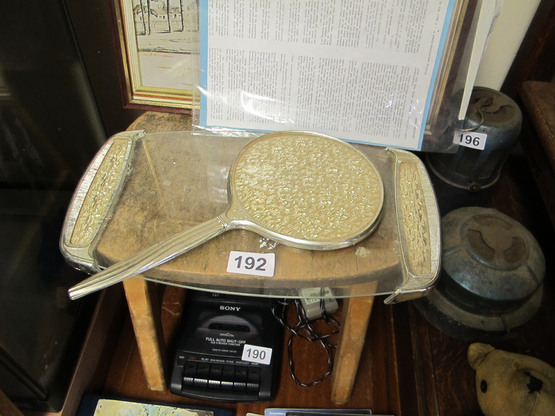 Lot 192: Decorative Silver-Toned Vanity Mirror and Tray Set