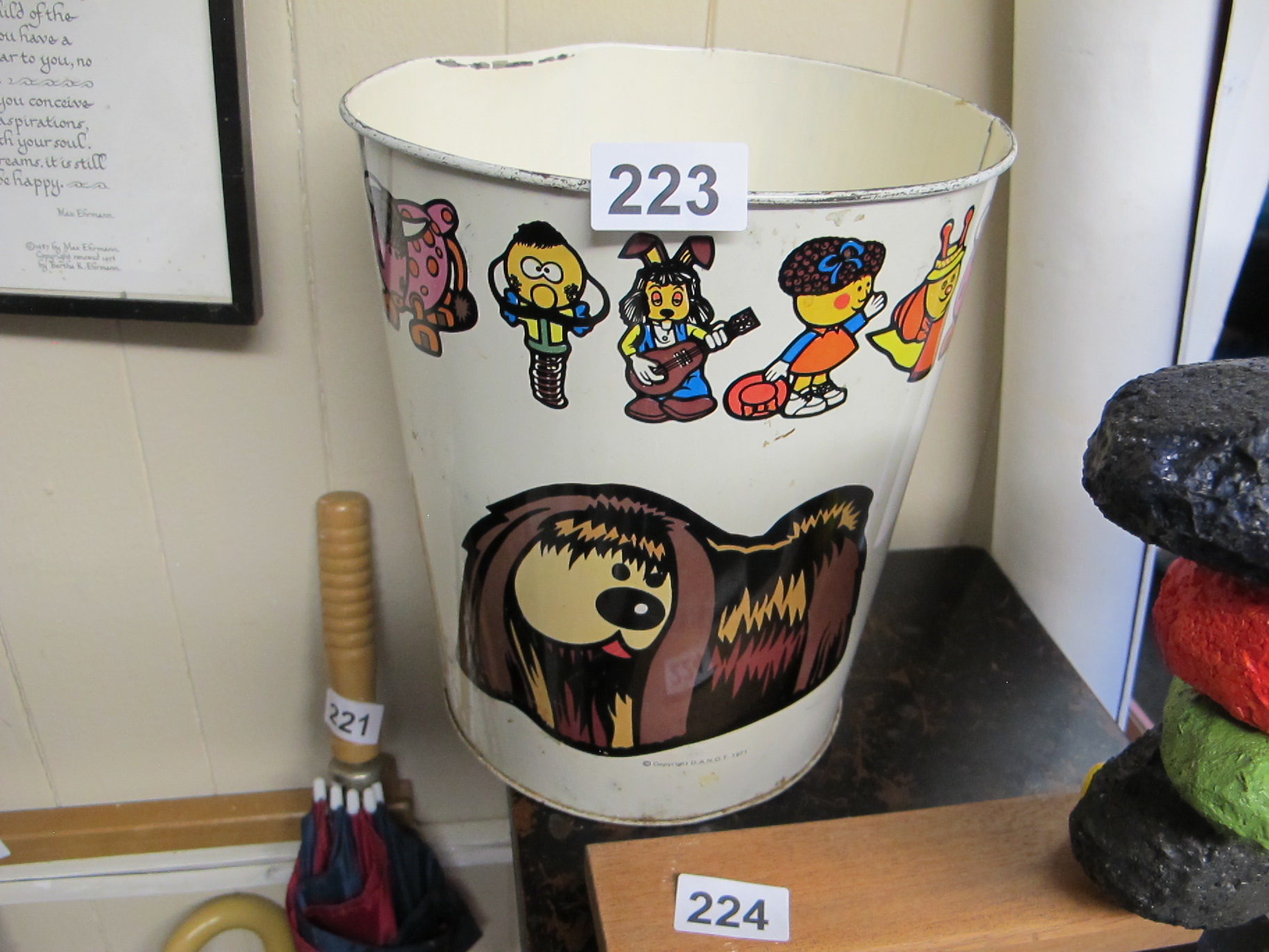 A Pop Art Style Enameled Metal Wastebasket, Dated 1971 Magic Roundabout