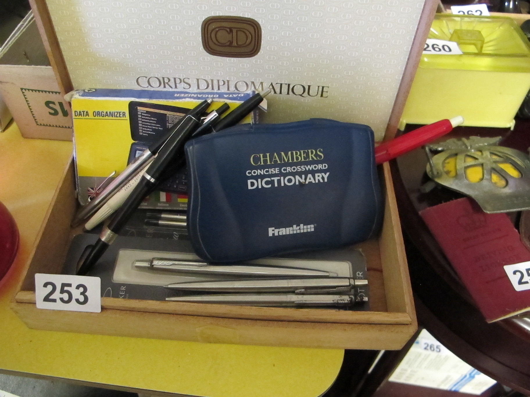 A Collection of Stationery and Personal Accessories, including Parker Pens and a ‘Corps Diplomatique’ Folder