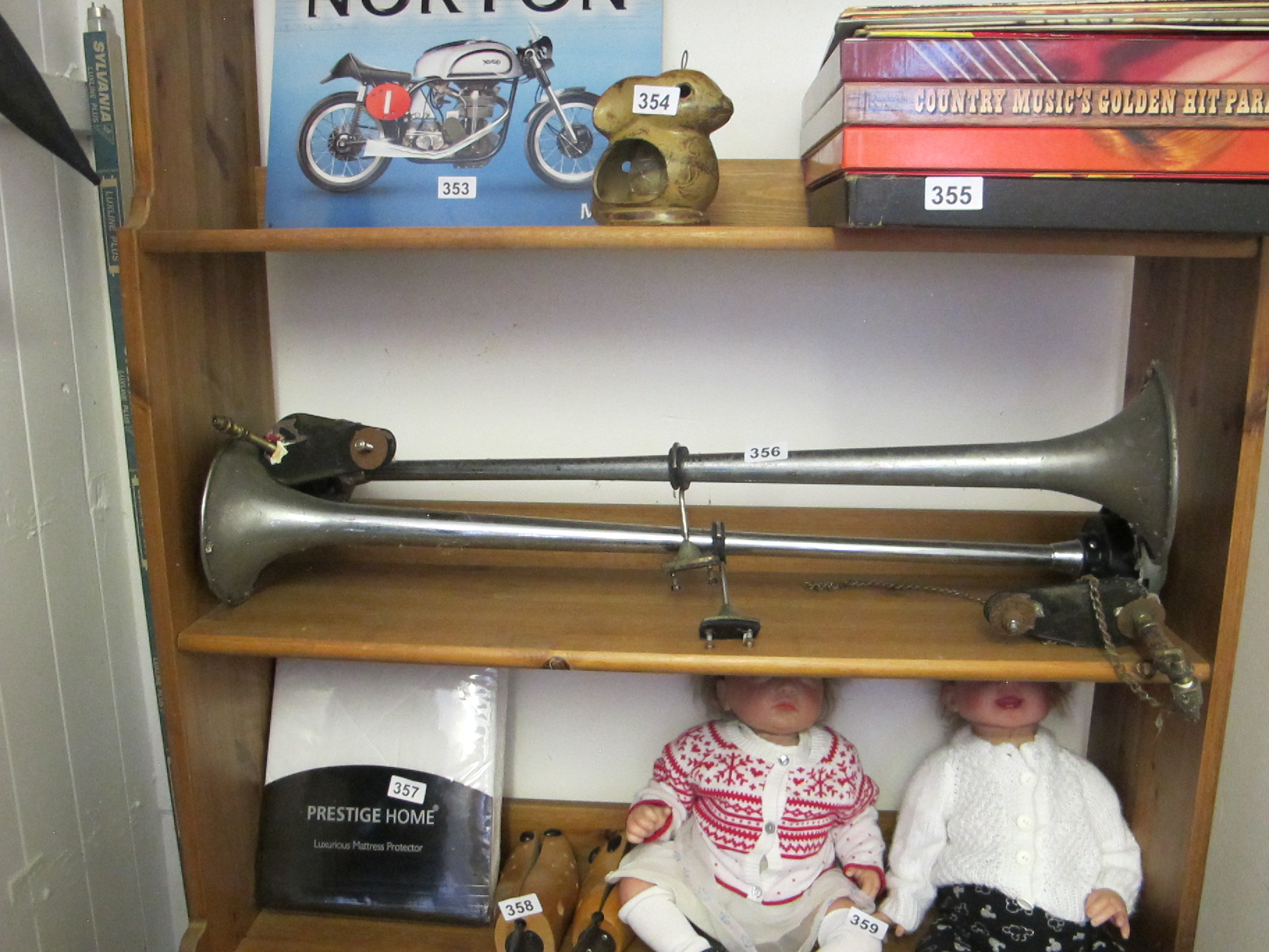 Vintage Silver-Toned Metal Dual Vehicle Horn Assembly