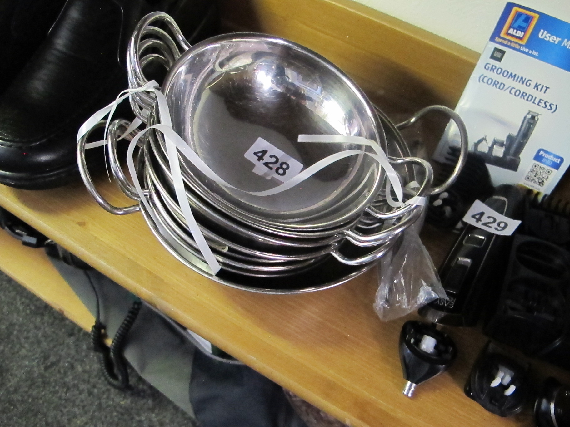 A Set of Modern Utilitarian Metal Serving Bowls with Handles