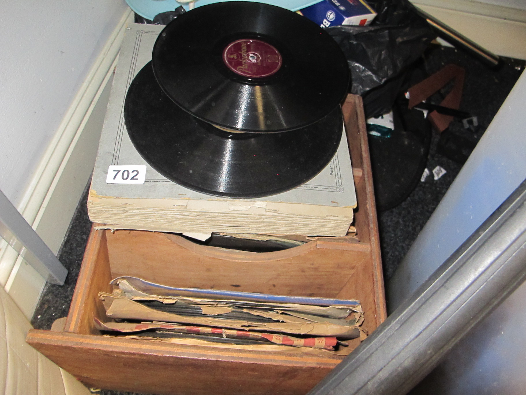 A Quantity of Early to Mid-20th Century Shellac Records and Printed Music in a Wooden Storage Crate