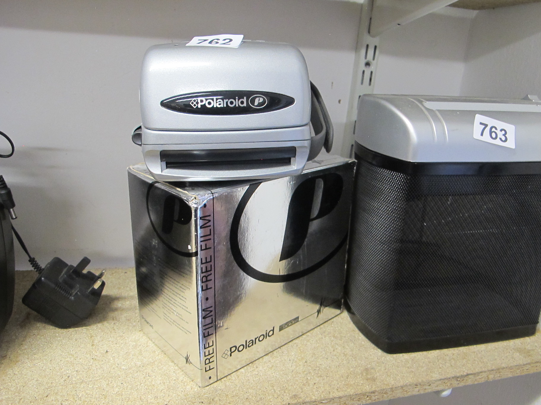 A Polaroid Instant Camera with Box and Power Adapter