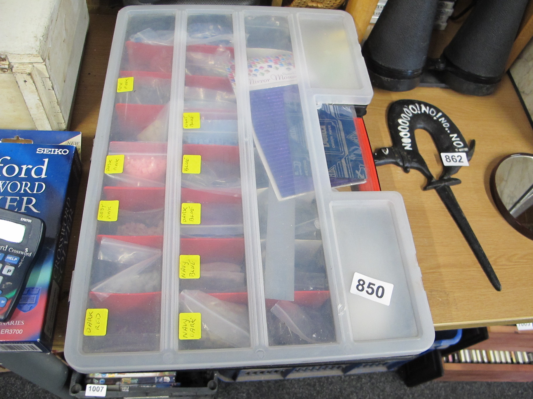 Lot 850: A Contemporary Plastic Craft Storage Box with Contents
