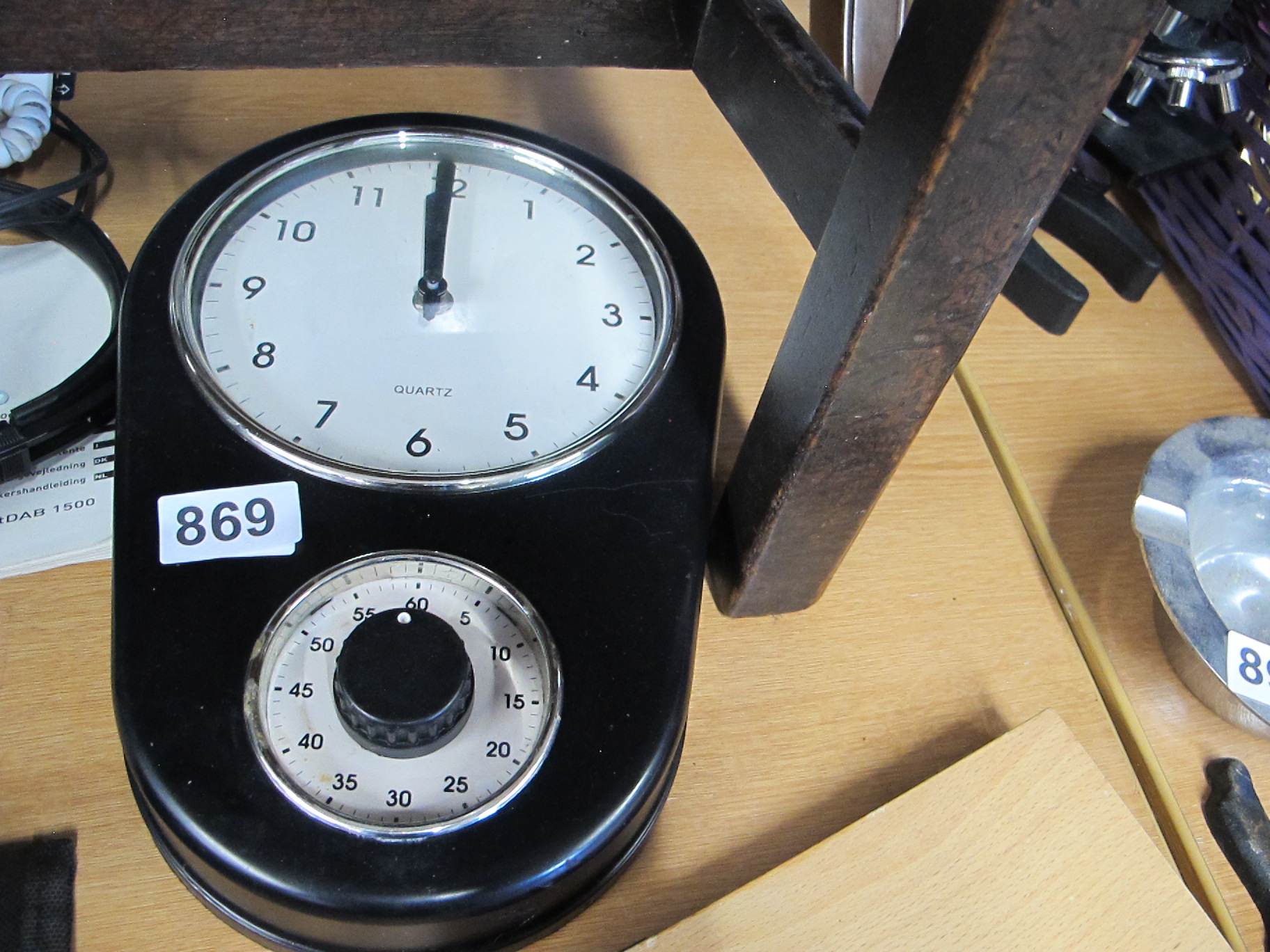 Lot 869: A Modern Black Quartz Desktop Clock with Integrated...