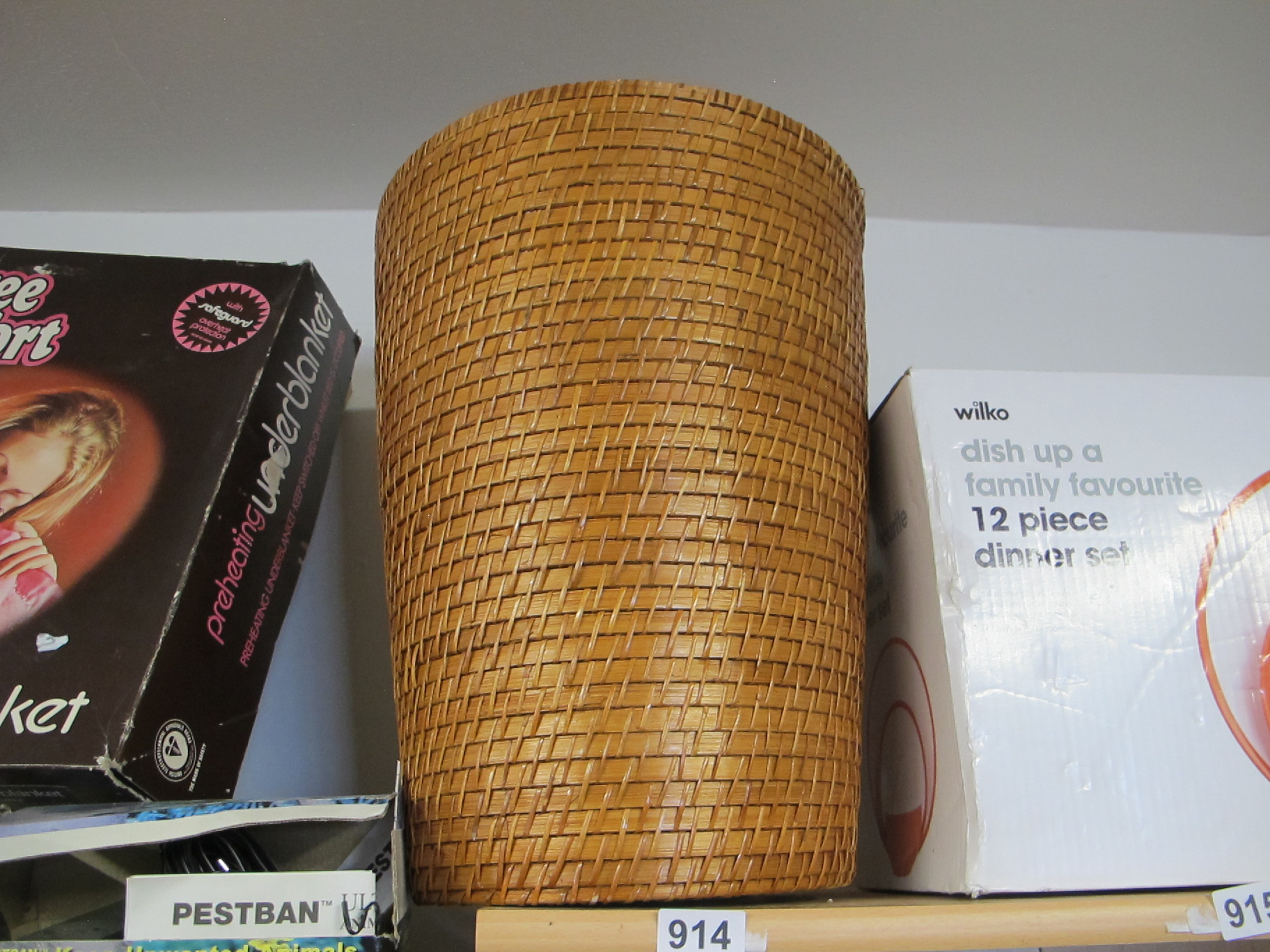 Lot 914: A Woven Rattan or Wicker Cylindrical Basket