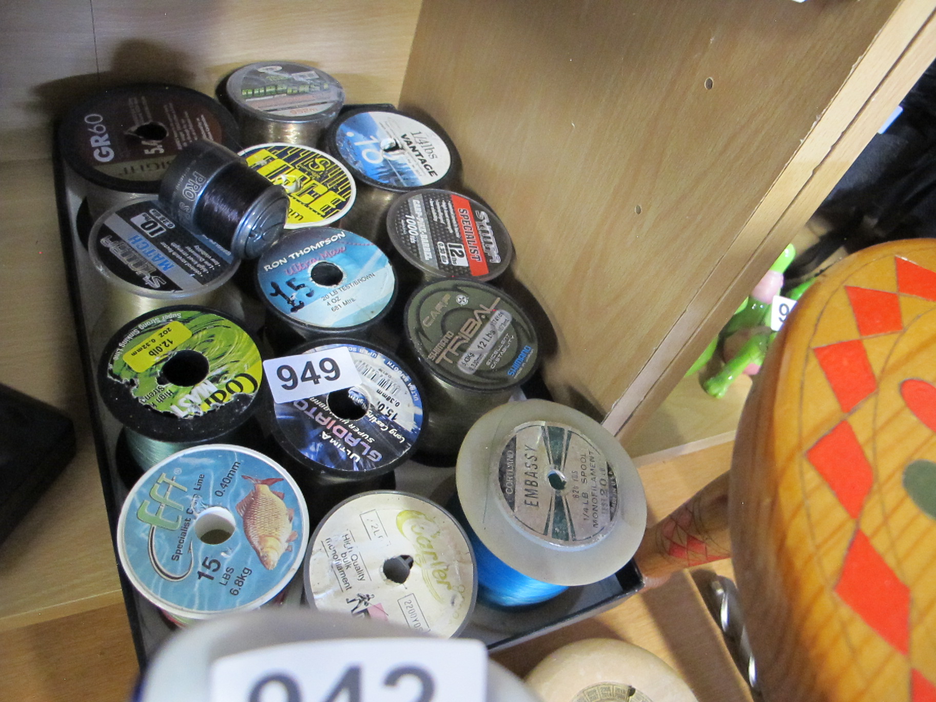 A Collection of Various Fishing Line Spools and a Decorative Wooden Object