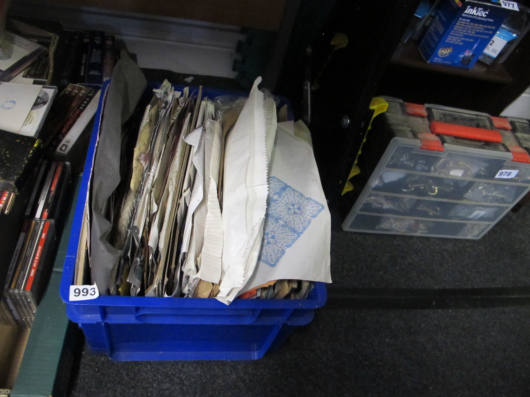 Lot 993: A Blue Plastic Storage Bin with Assorted Paper...