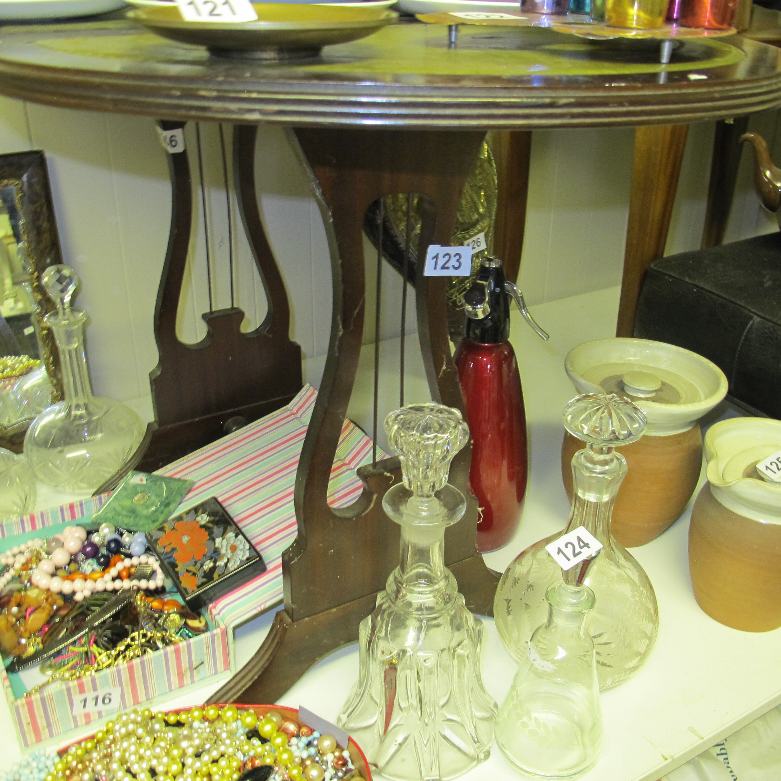 Lot 123: Revival Style Occasional Table with Harp-Form Support