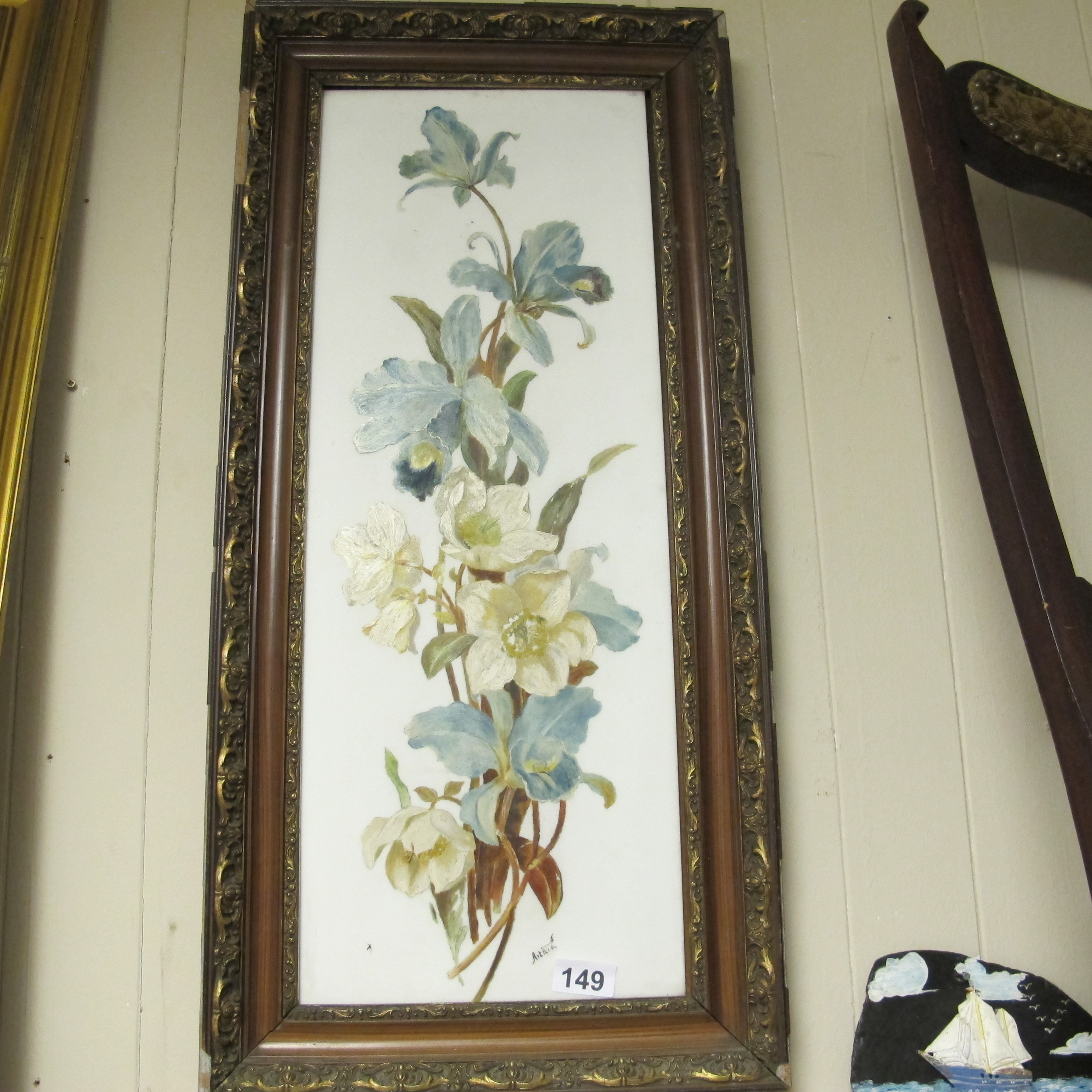 Signed ‘Attie’ (or ‘Artie’) Botanical Hand-Painted on to porcelain Panel in Ornate Frame, Late 19th/Early 20th Century