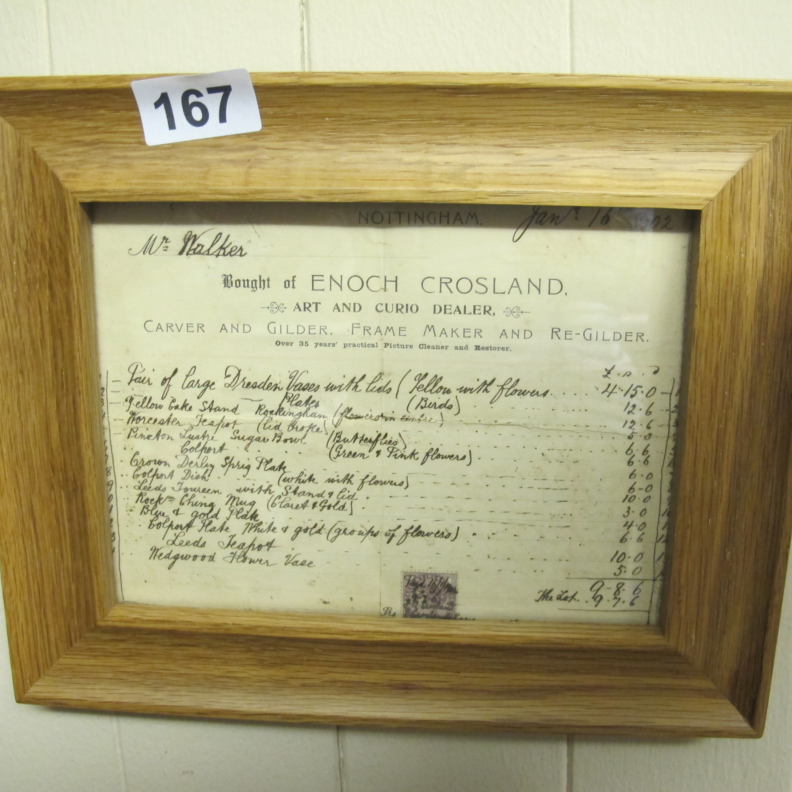 Framed Enoch Crosland Nottingham Art and Curio Dealer Billhead, 1902