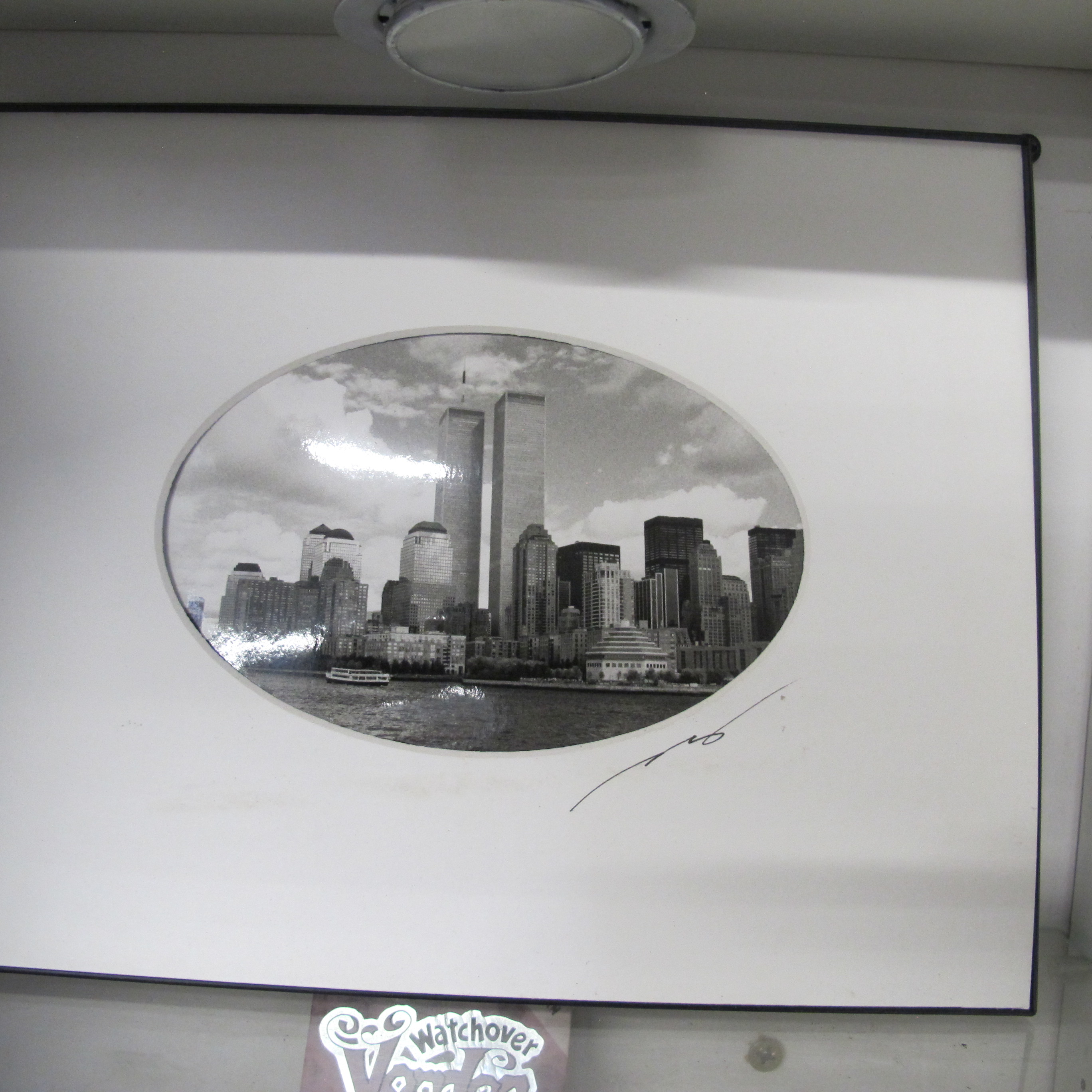 Signed Black and White Photograph of the World Trade Center Twin Towers, New York City, Framed