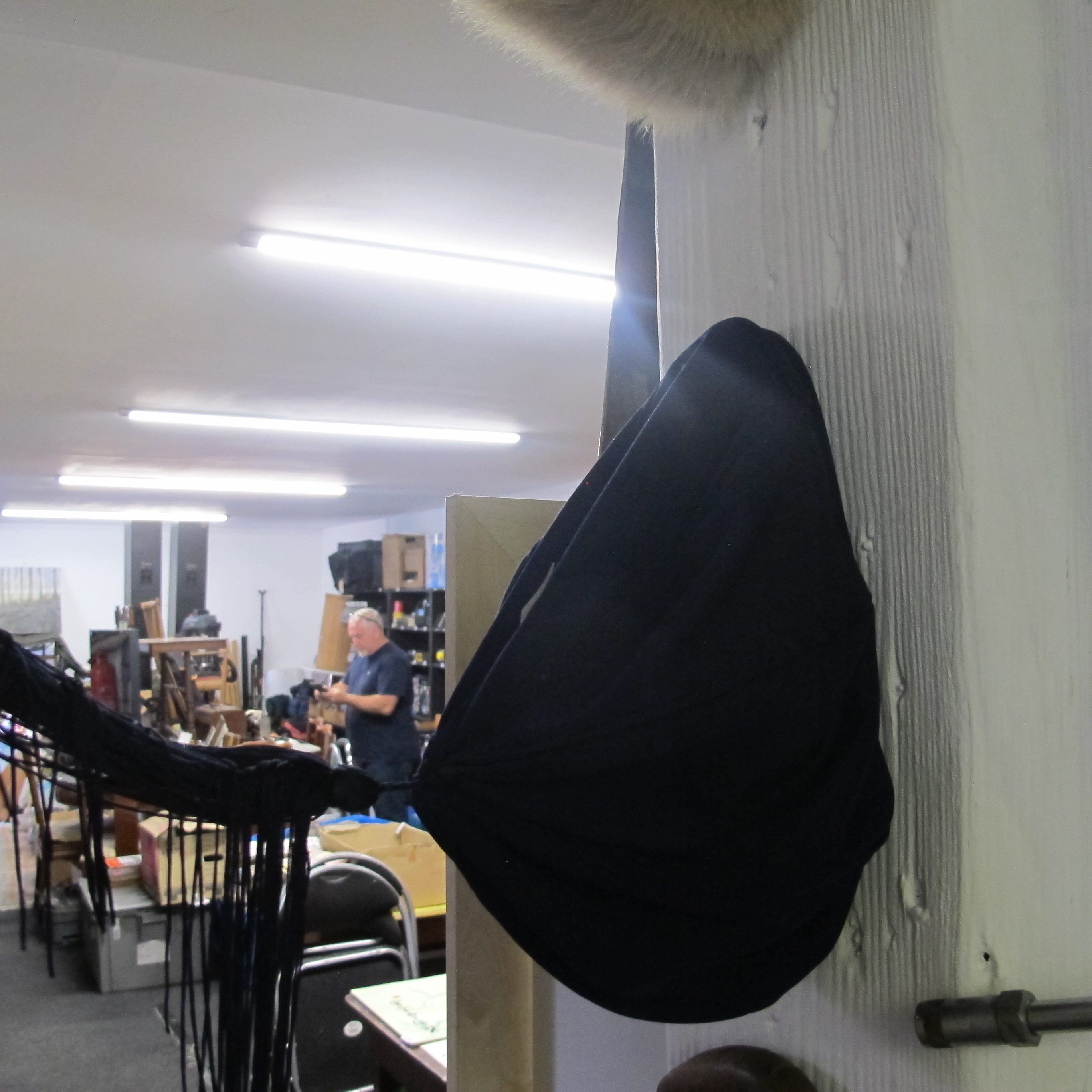 A Black Textile Cover or Accessory with Fringes...