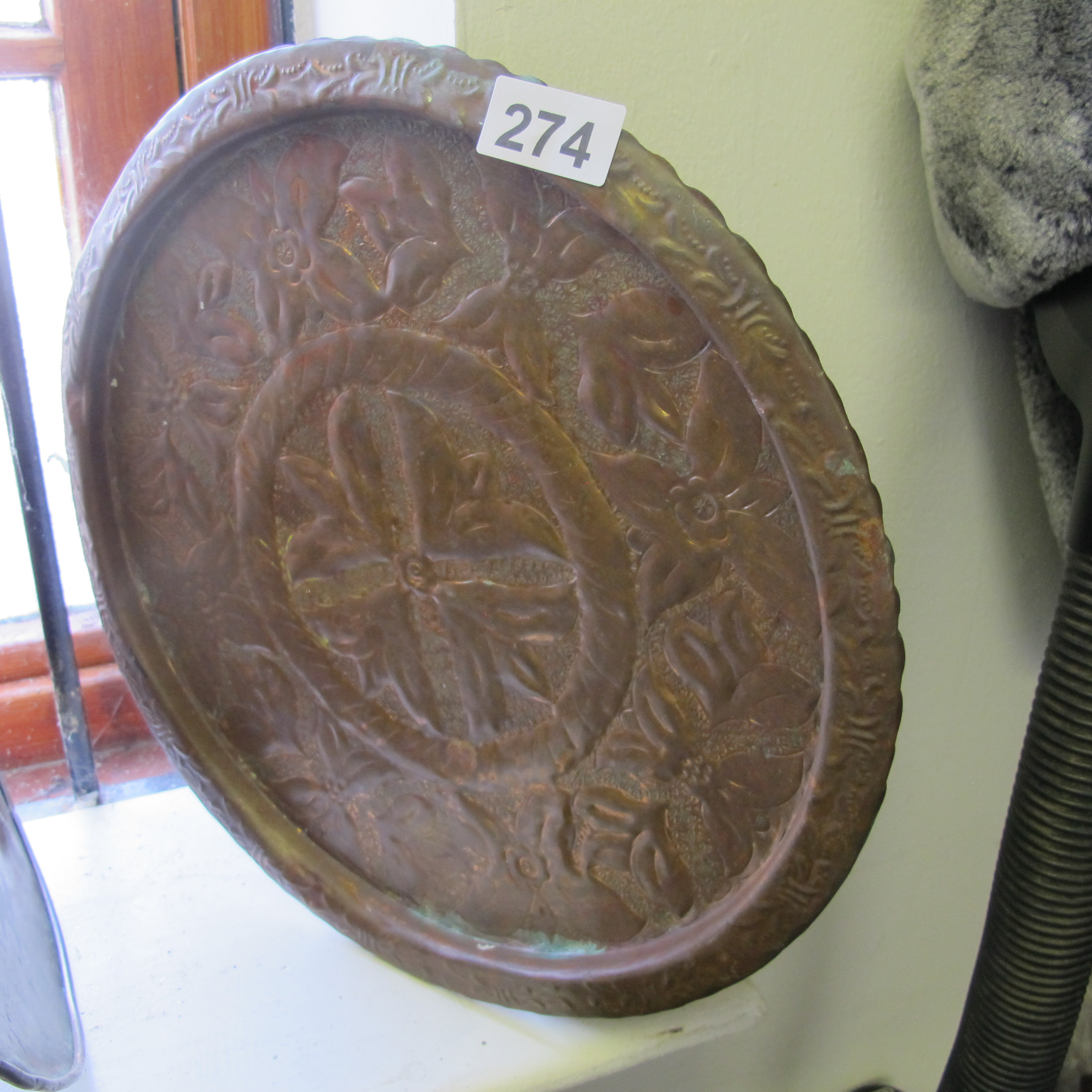 Lot 274: An Arts and Crafts Copper Repoussé Circular Charger