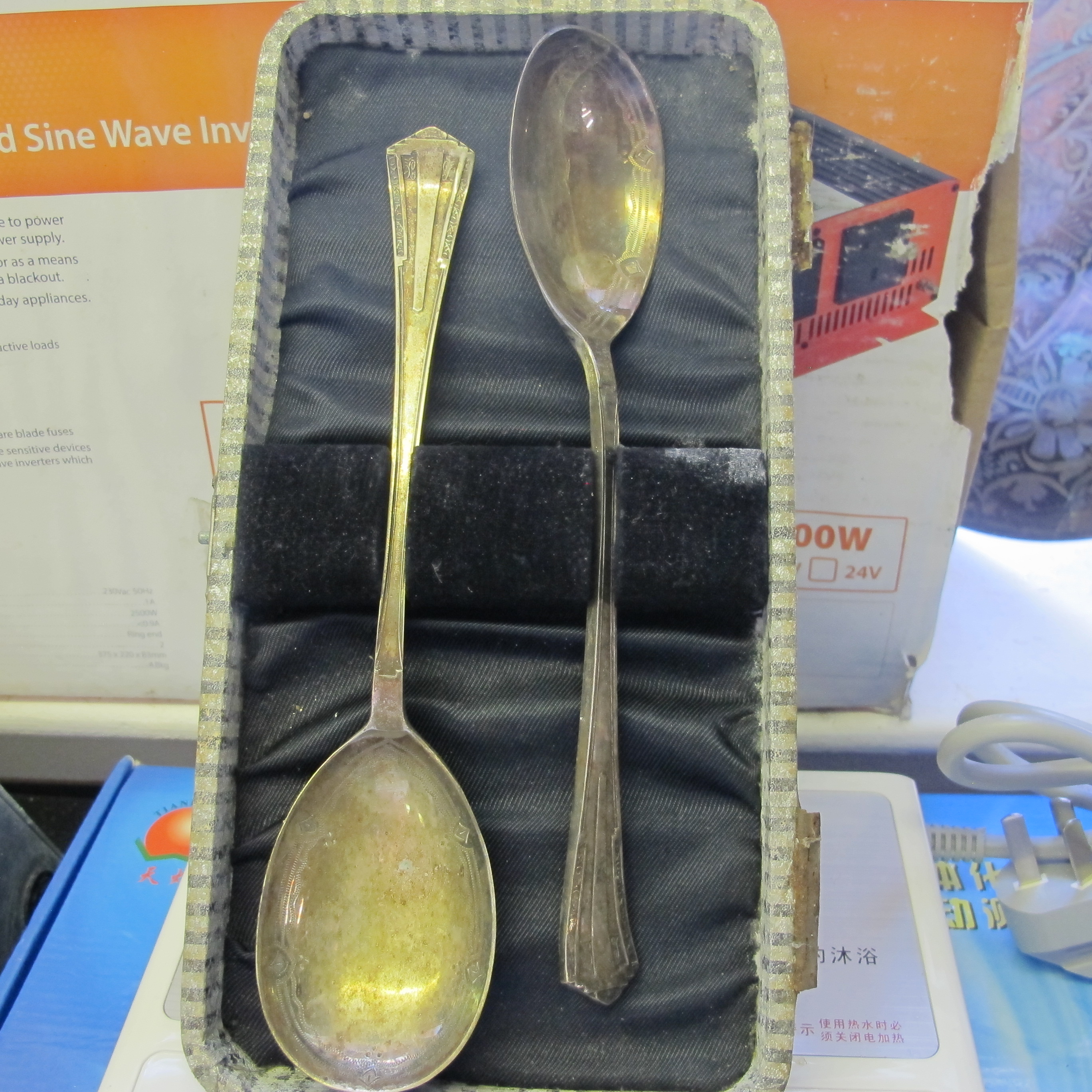 Vintage Silverplate Spoons, One Art Deco Style, in Fitted Case