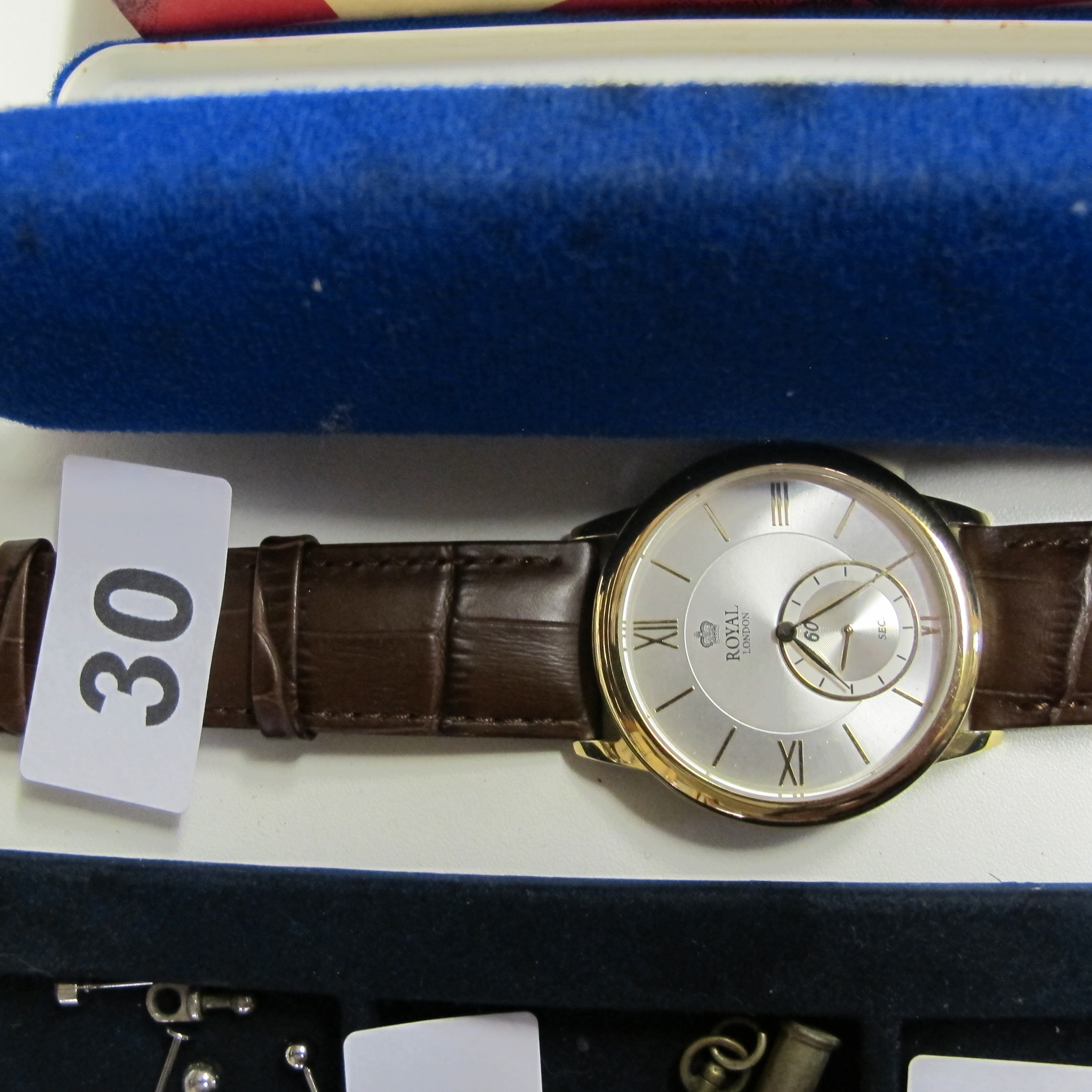 Royal London Gents Gold Plated Brown Leather Strap Wristwatch, Model 41500-03