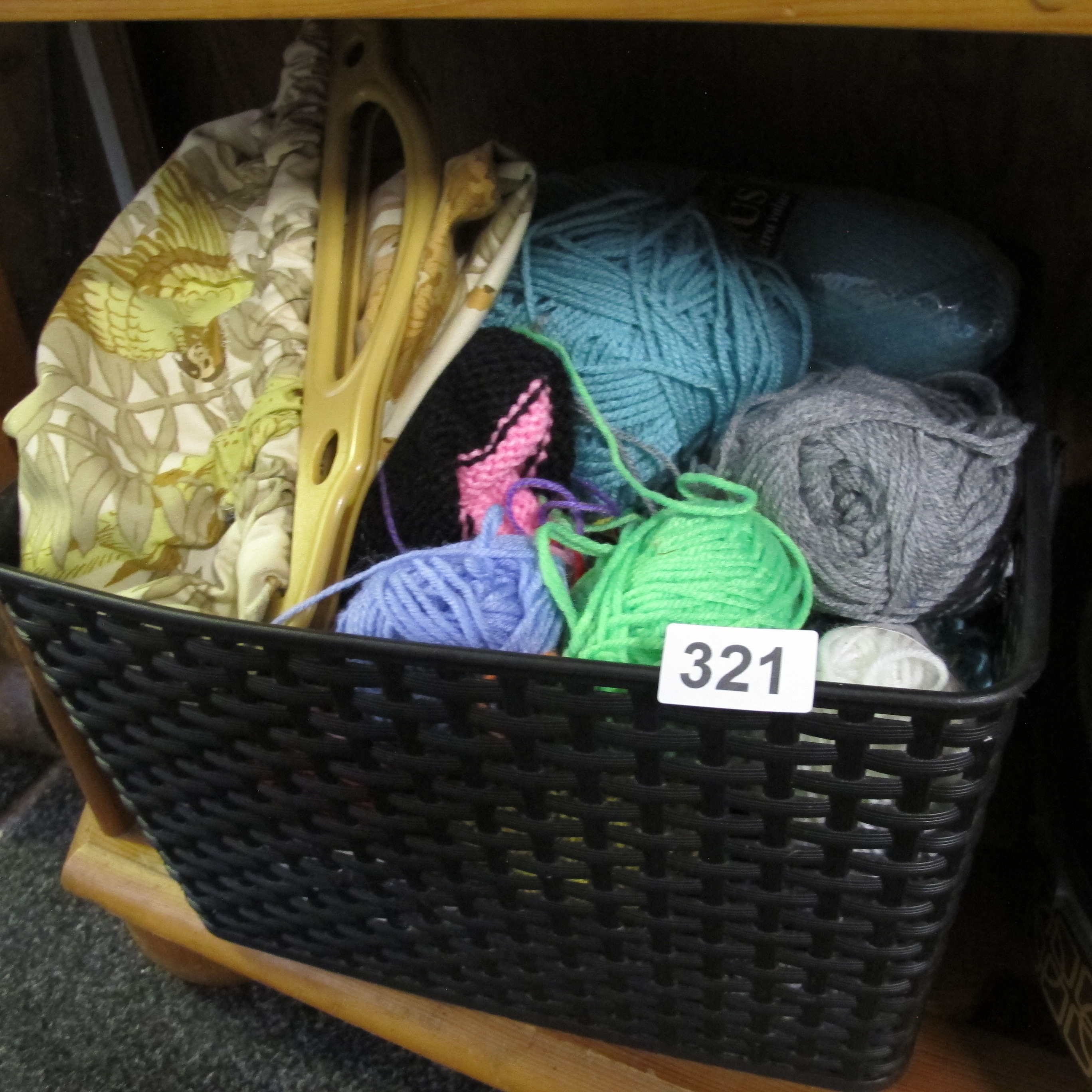 A Lot of Contemporary Crafting Supplies in a Plastic Basket