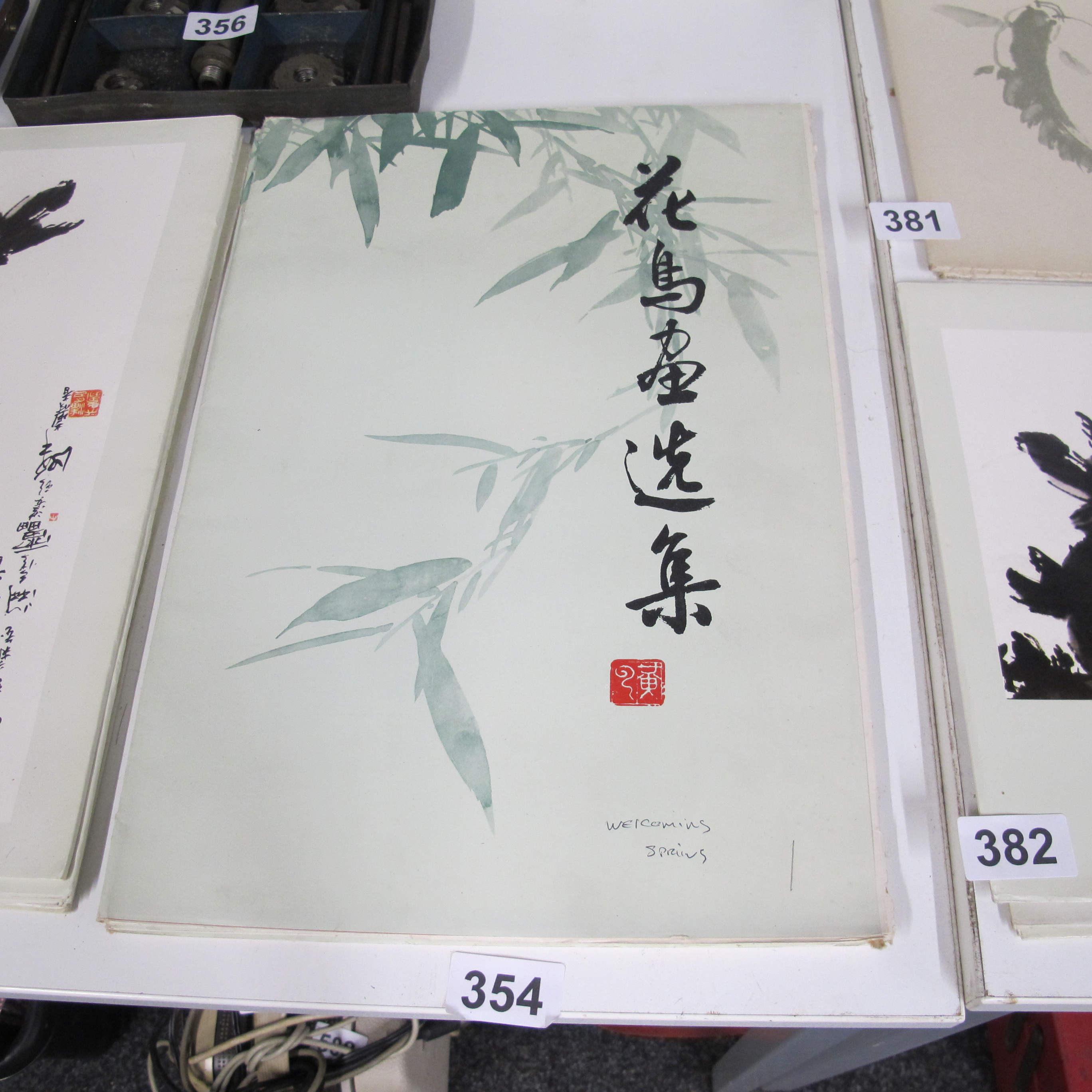 Vintage Chinese Sumi-e Style Album Cover with Bamboo and Calligraphy