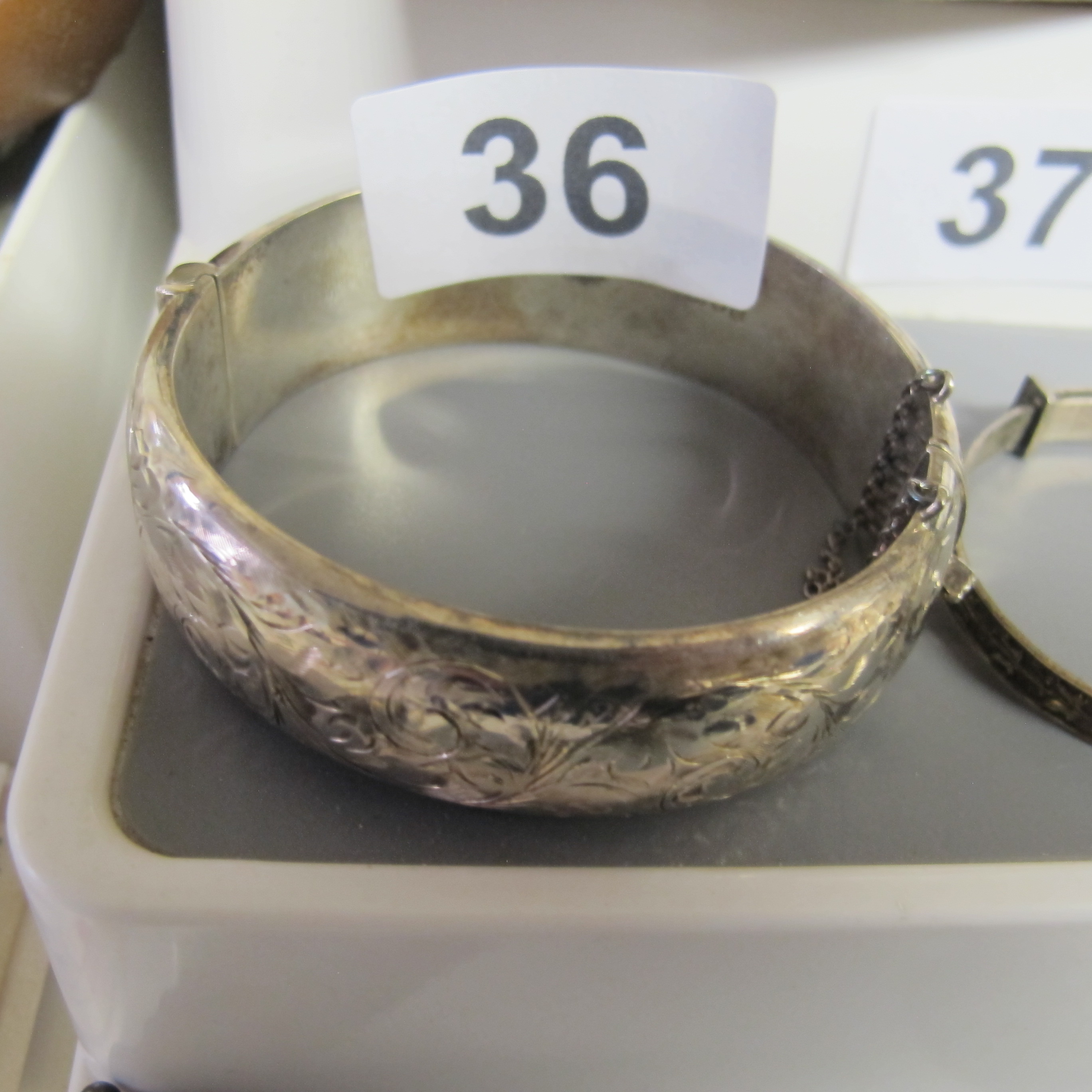 Sterling Silver Engraved Floral Hinged Bangle Bracelet