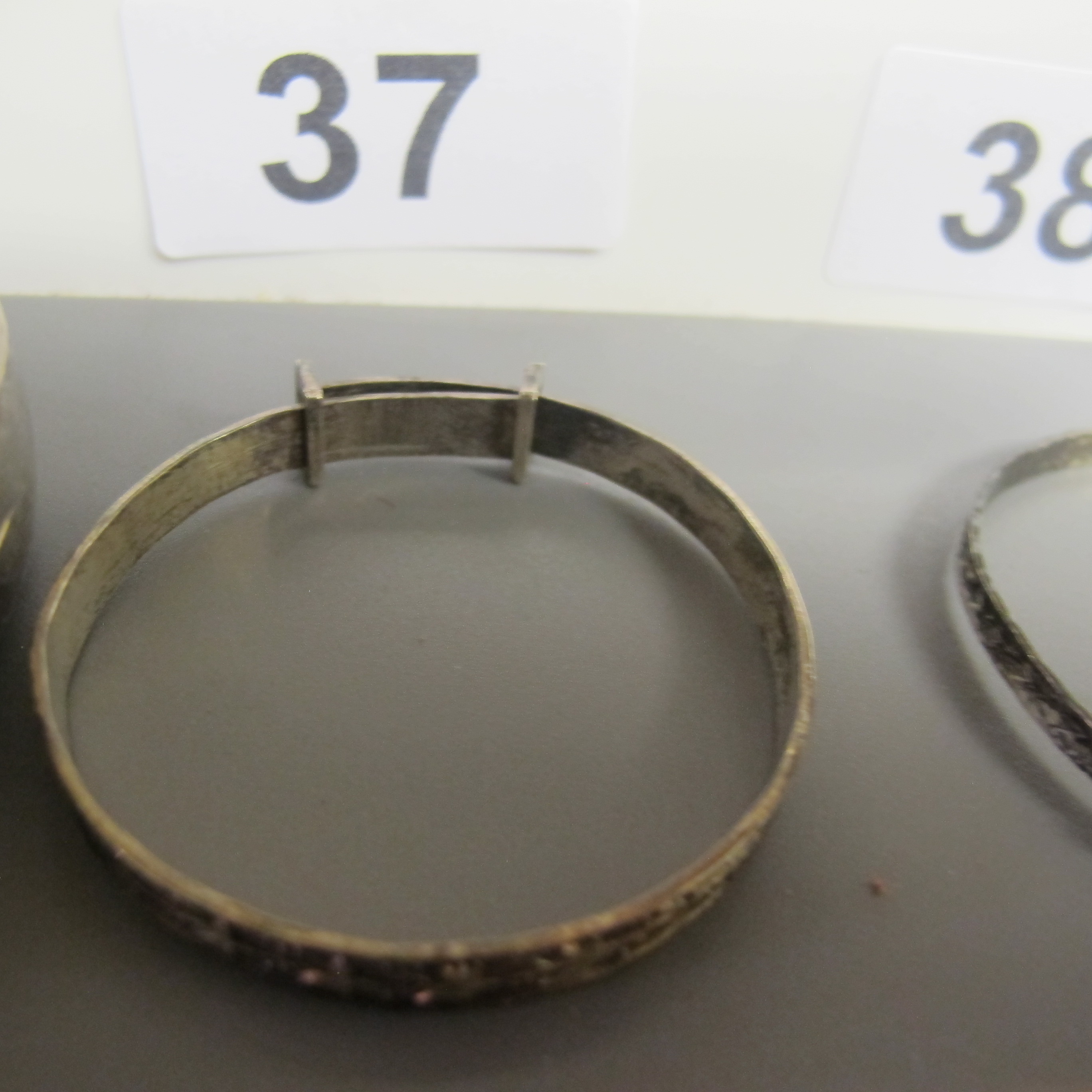 Vintage Sterling Silver Etched Hinged Bangle Bracelet