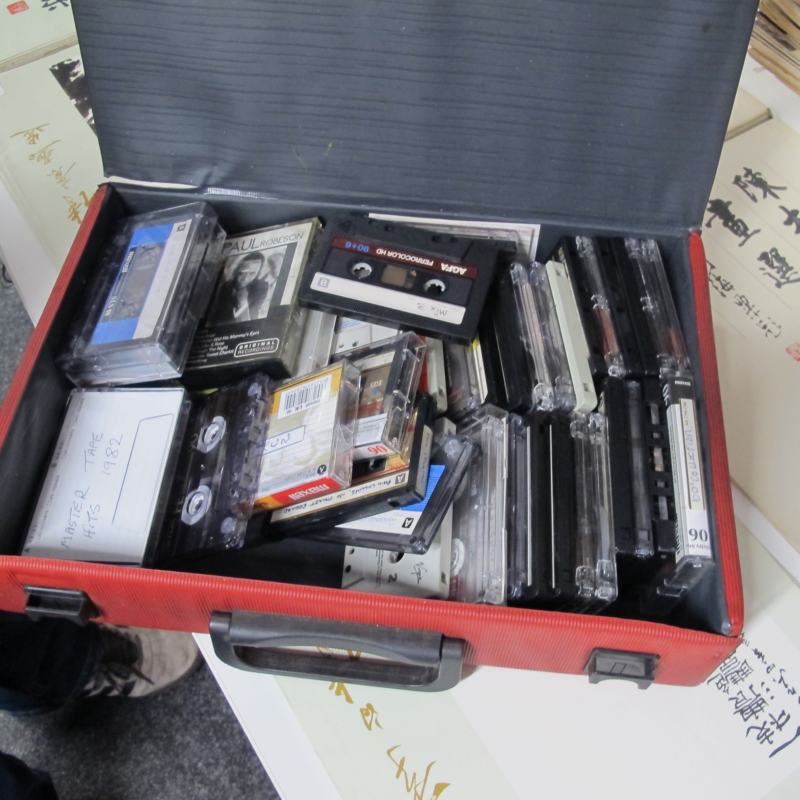 Vintage Audio Cassette Tape Collection in Carrying Case