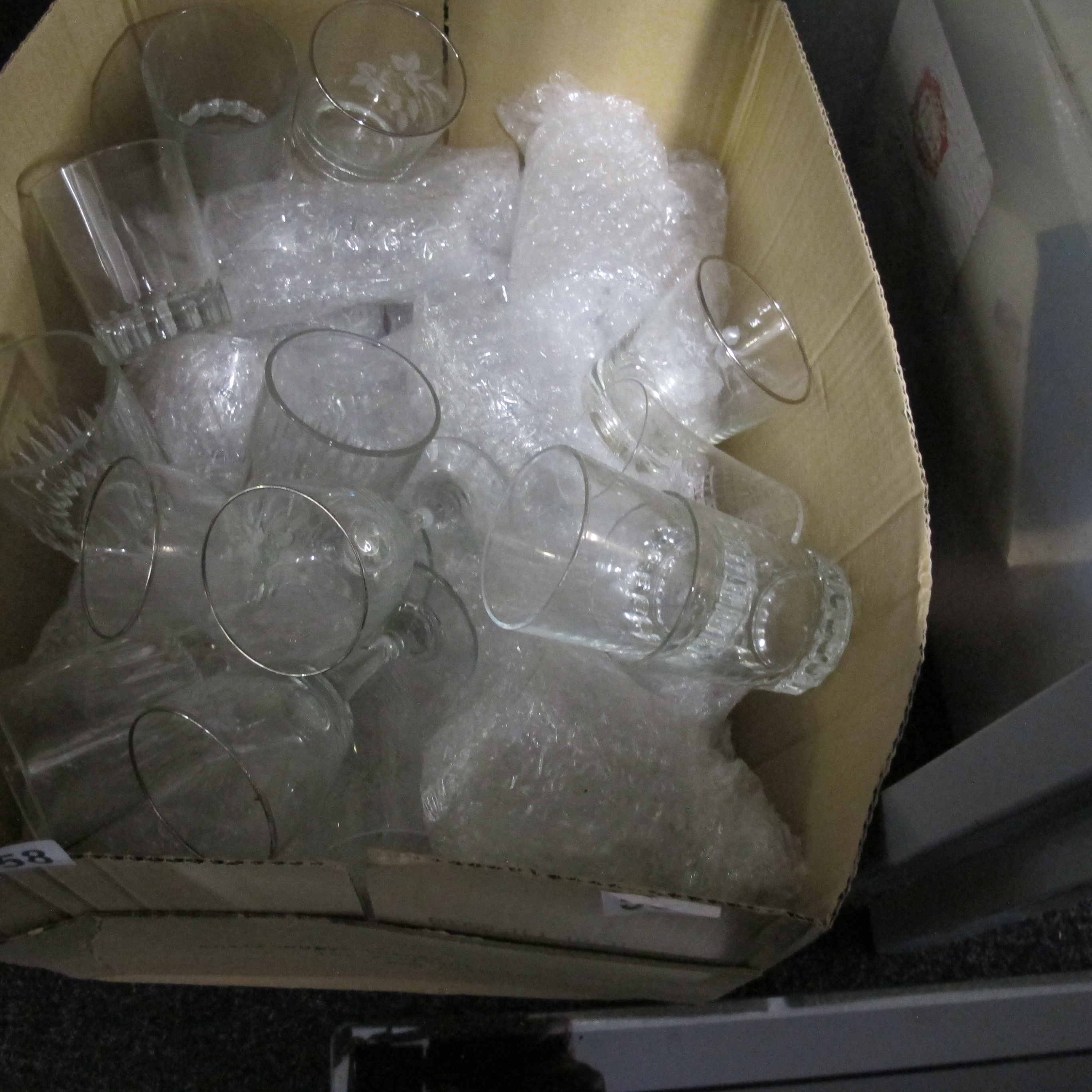 Lot 458: A Box Lot of Assorted Clear Glass Drinking...