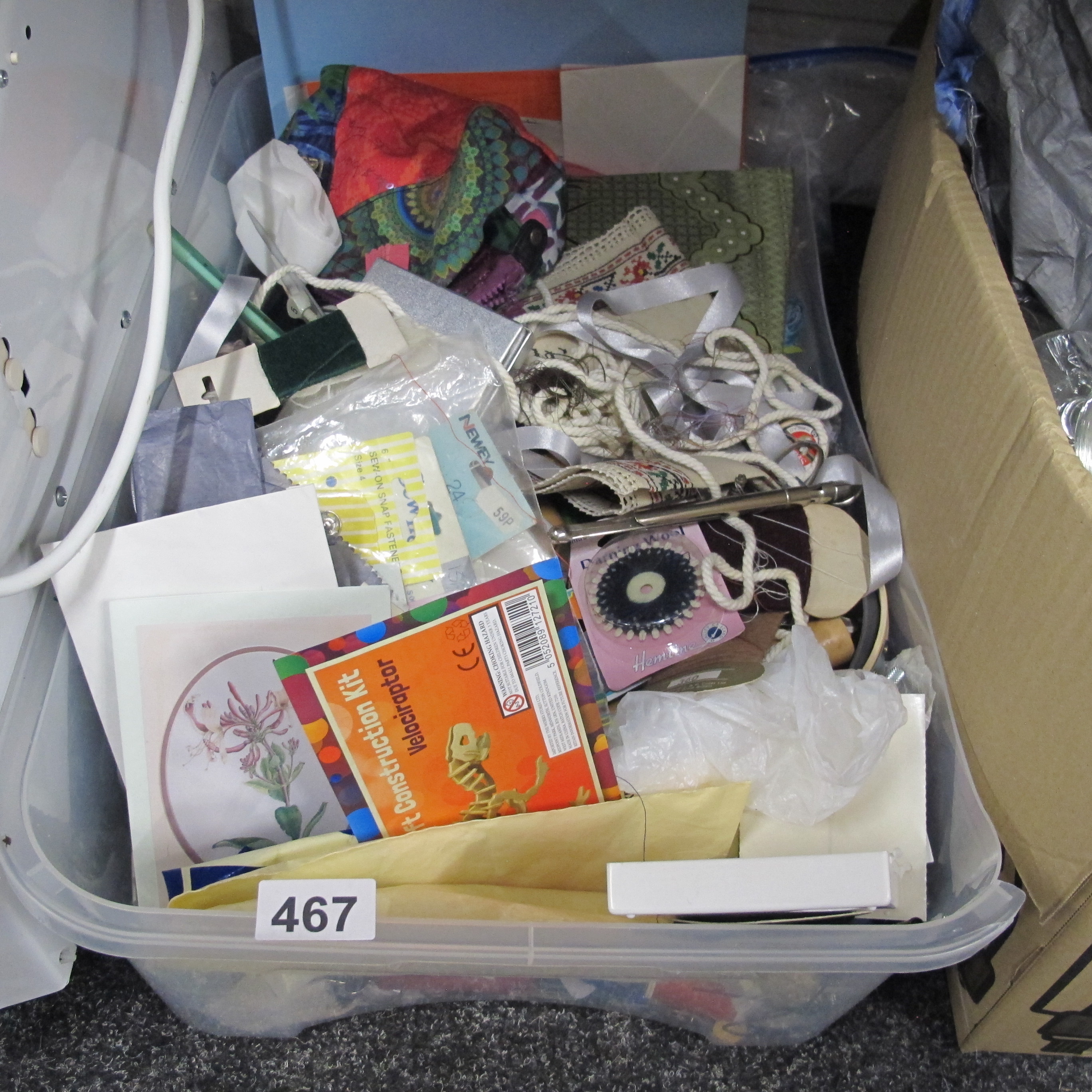A Quantity of Crafting and Hobby Supplies, including Fabrics, Sewing Notions, and an Art Construction Kit