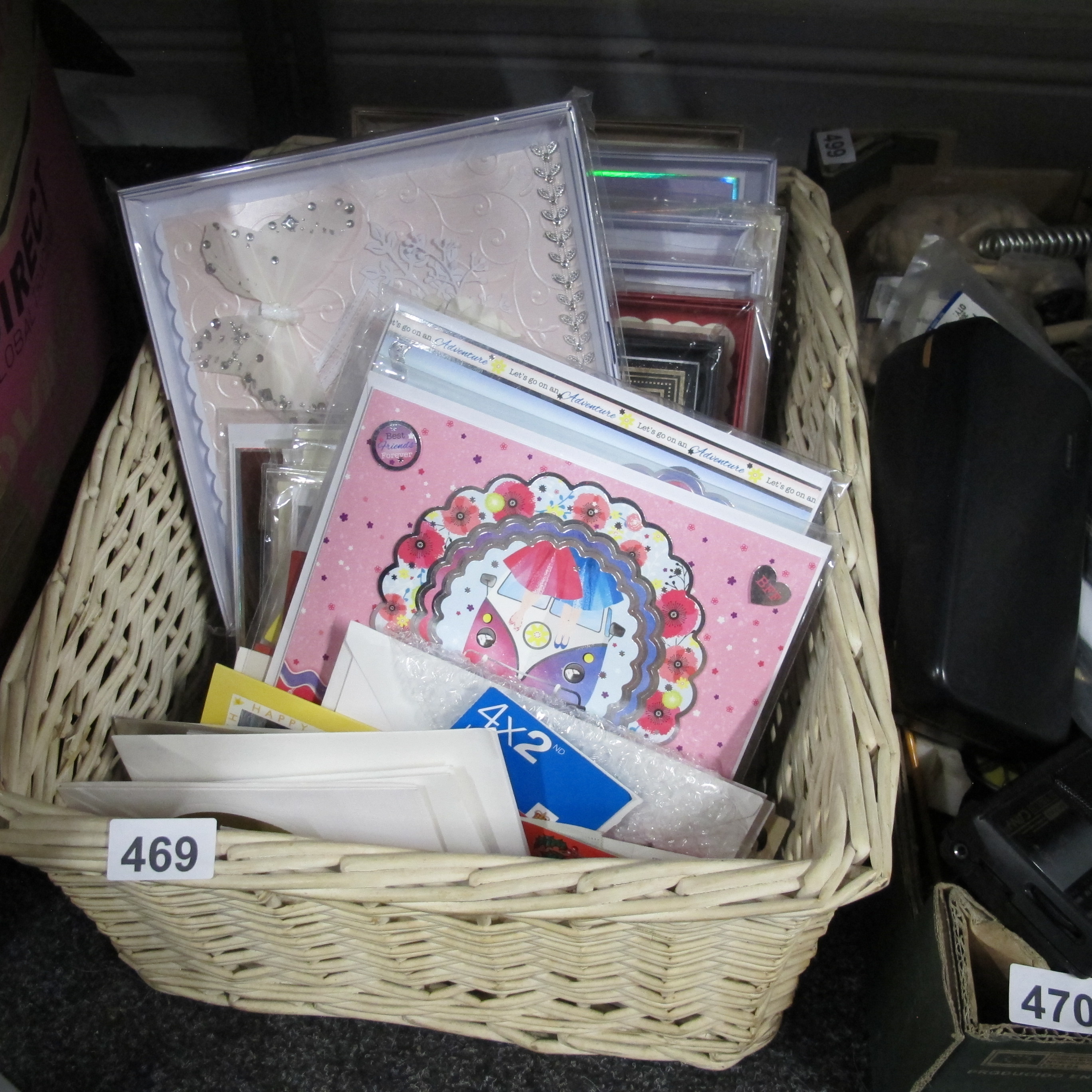 A Basket of Contemporary hand made Stationery and Crafting Supplies