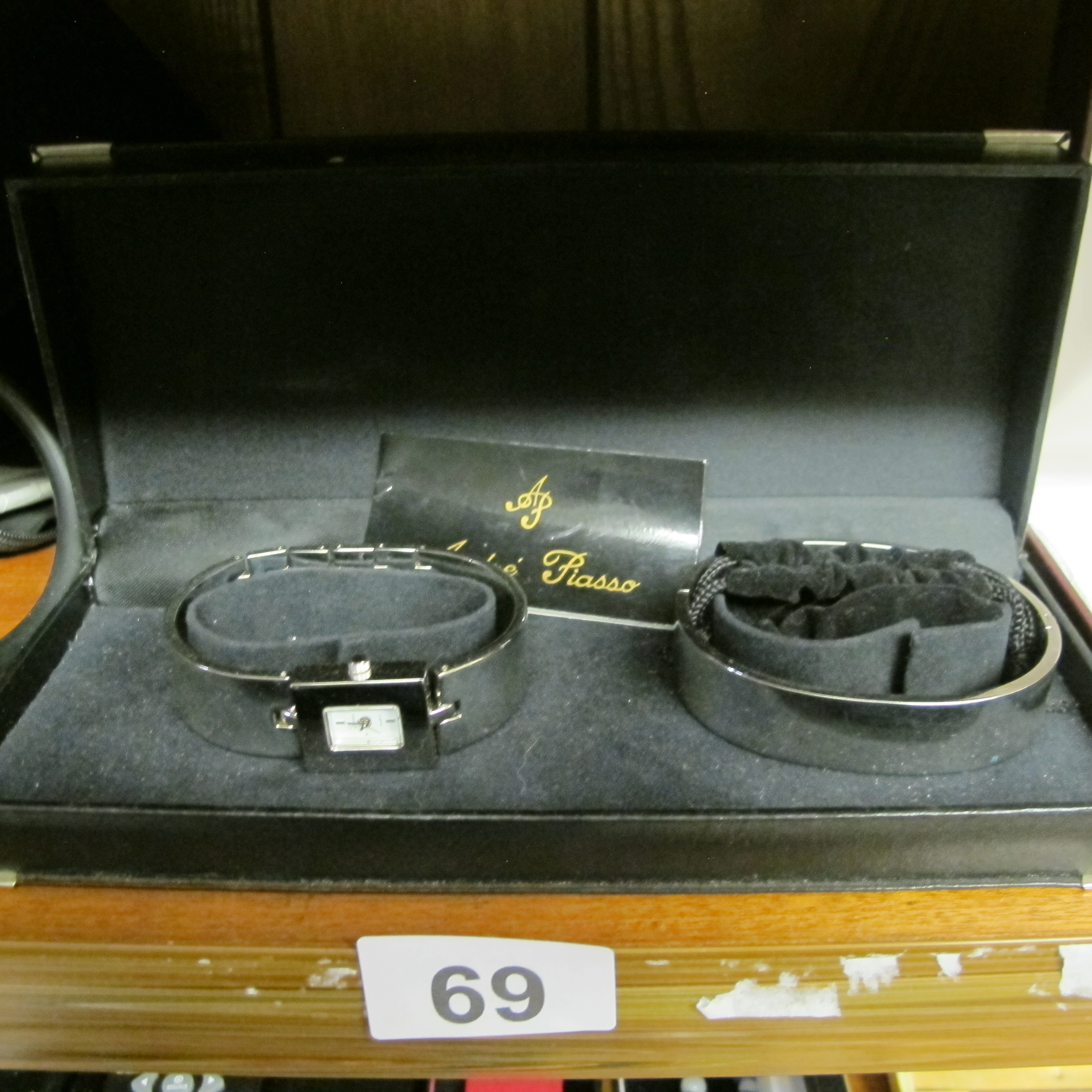 Contemporary Fashion Dark-Toned Metal Cuff Watch and Bracelet Set