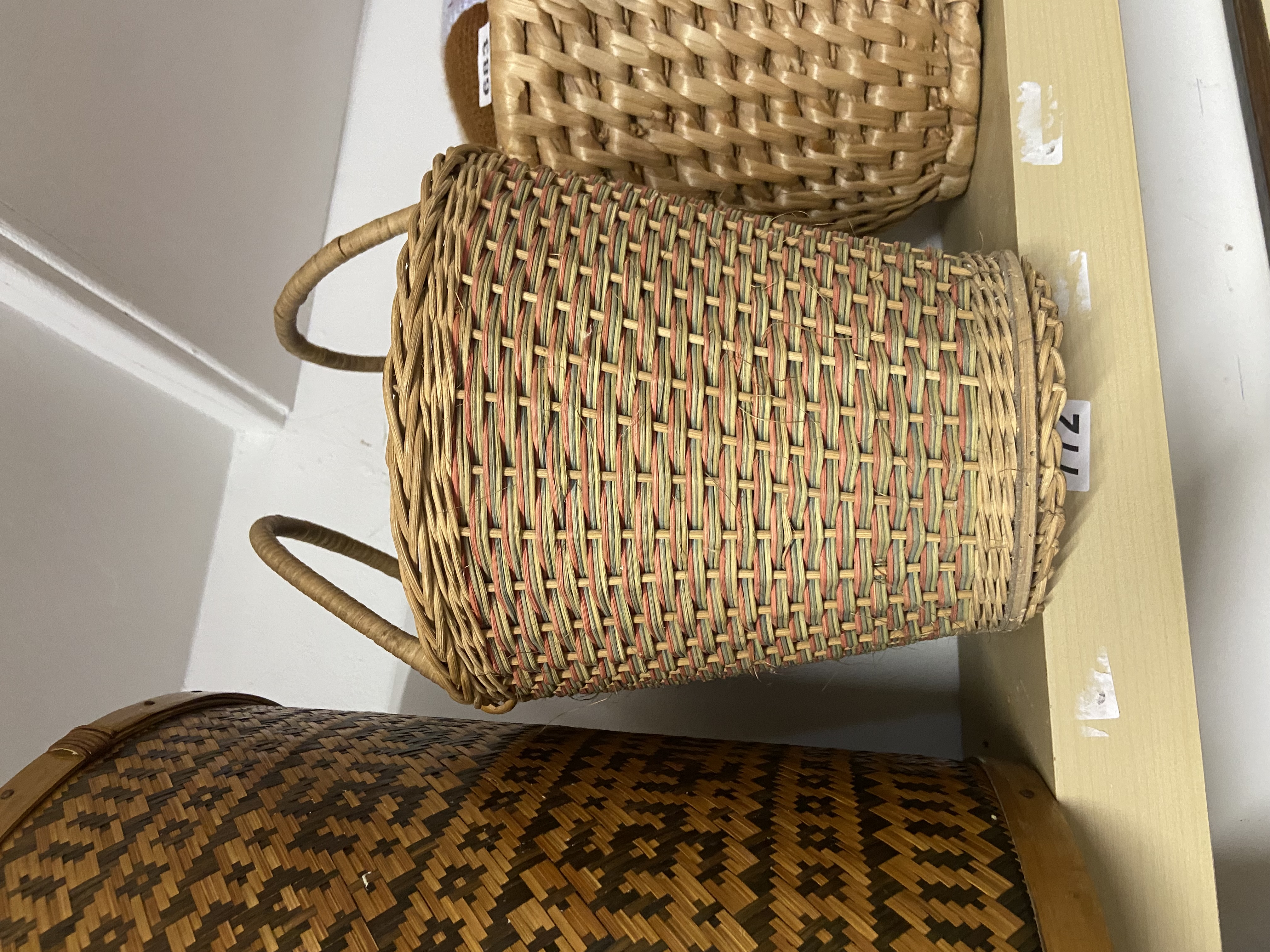 Woven Rattan or Wicker Basket with Colored Weave and Twin Handles