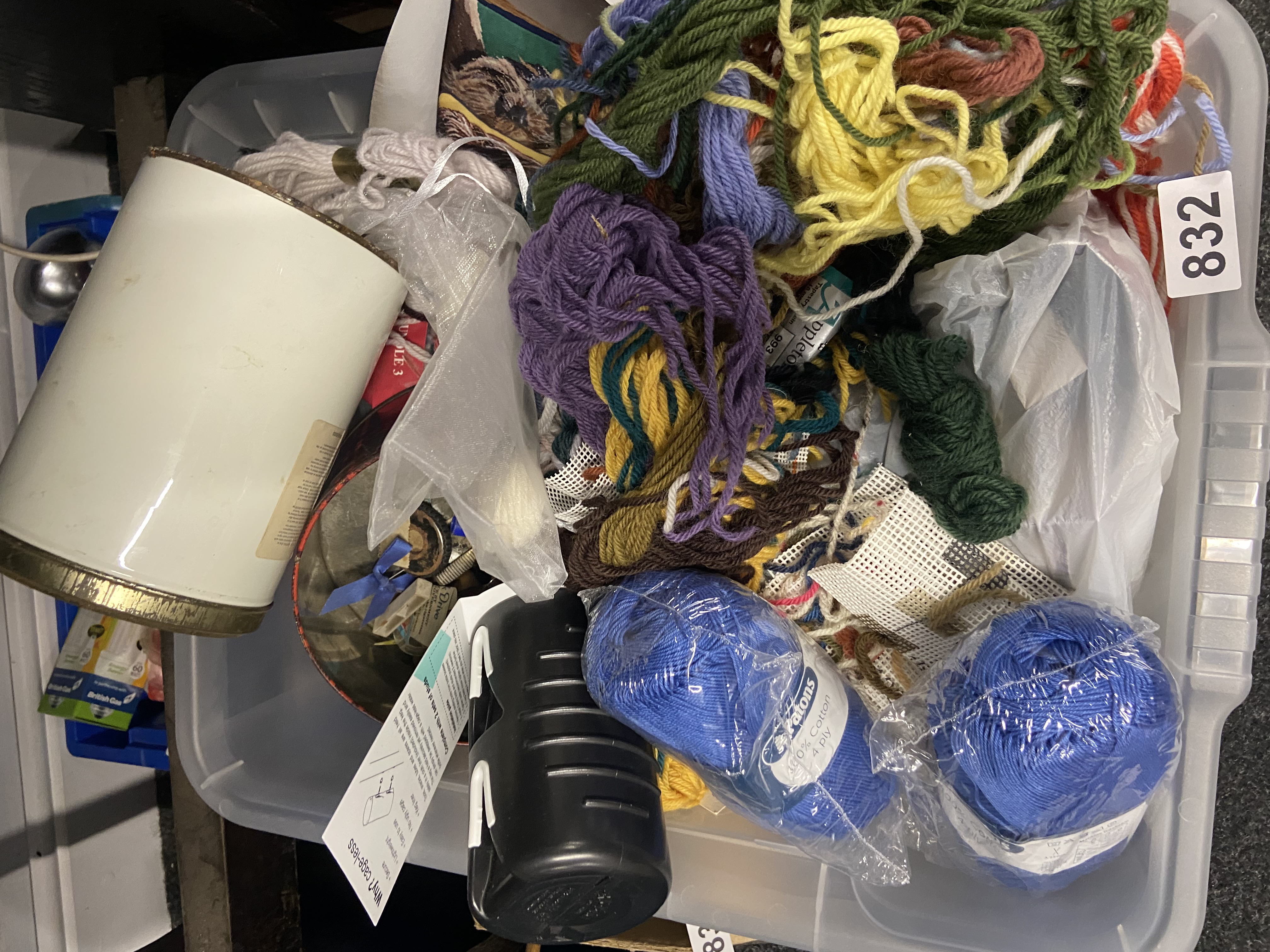 Assorted Modern Craft and Hobby Supplies, including Yarn, Needlepoint Canvas, and Notions