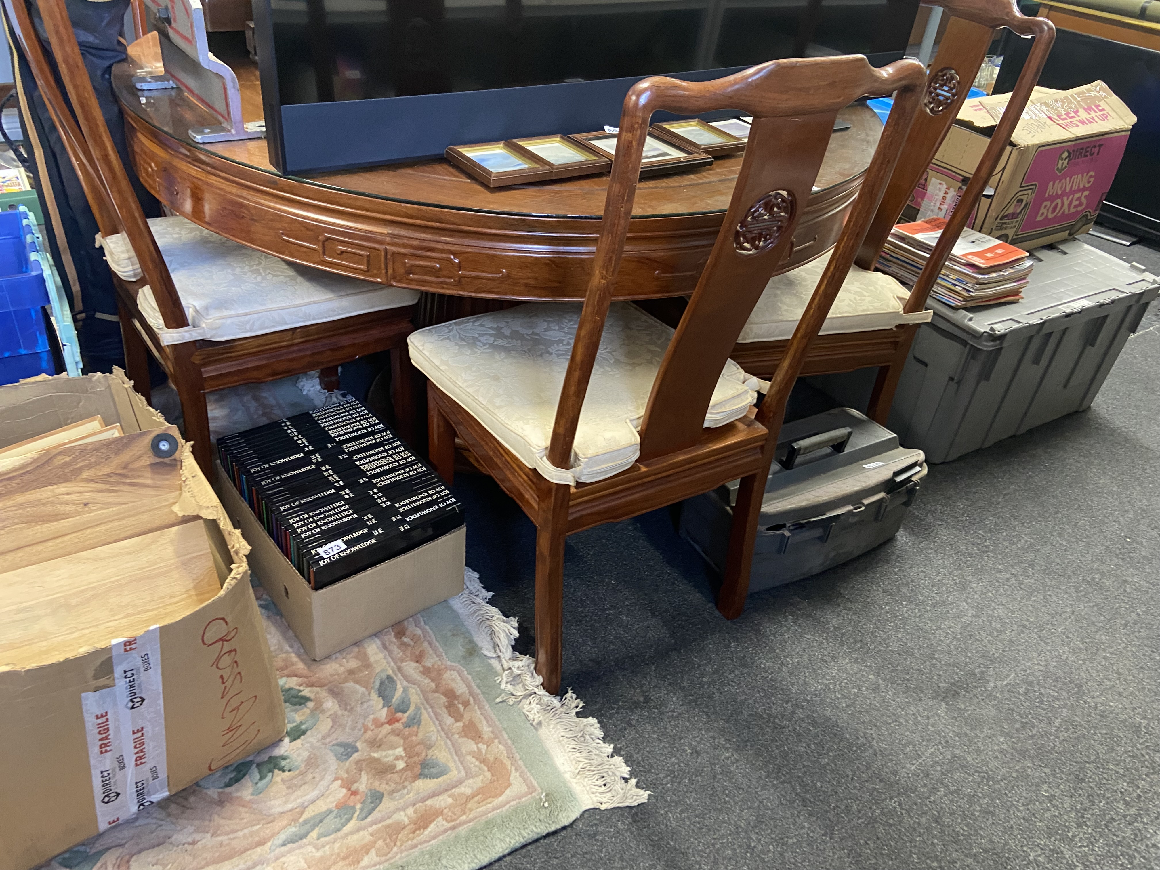 Lot 869: A Chinese Rosewood Dining Table and Three Chairs
