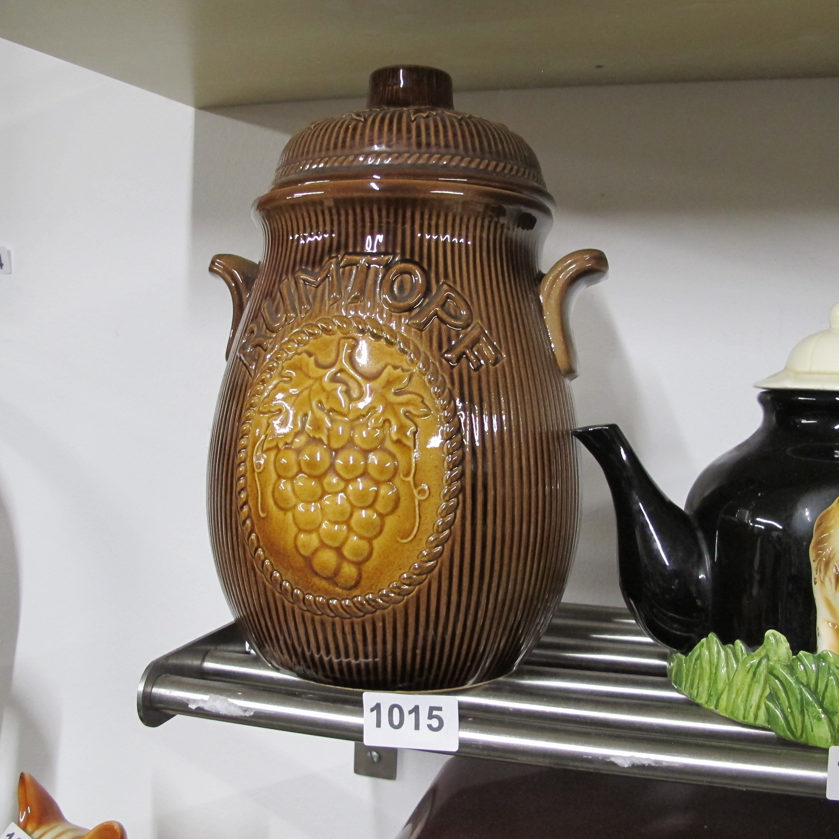 Vintage West German Ceramic Rumtopf Lidded Jar with Grape Motif