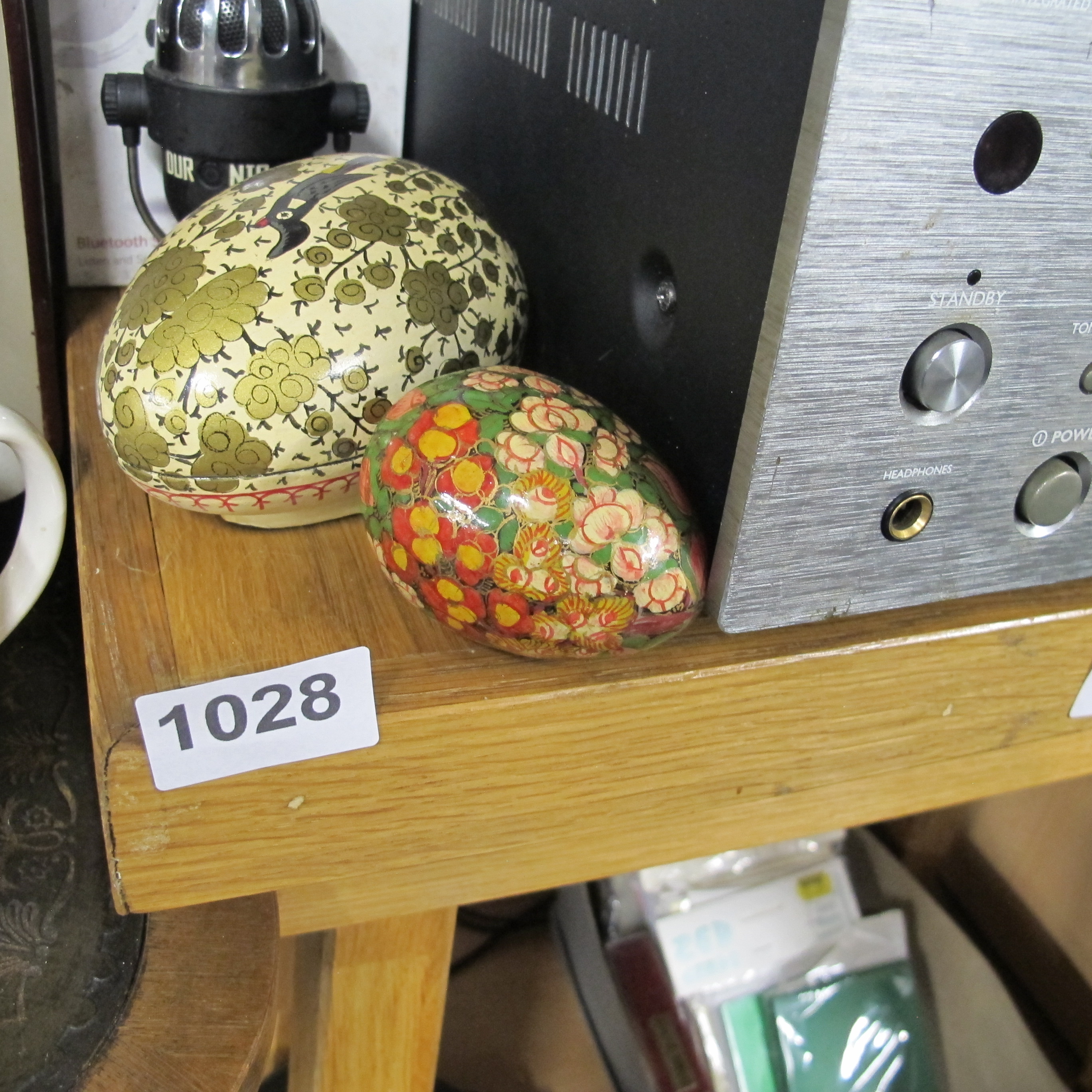 A Pair of Kashmir Hand-Painted Papier Mâché Egg Trinket Boxes