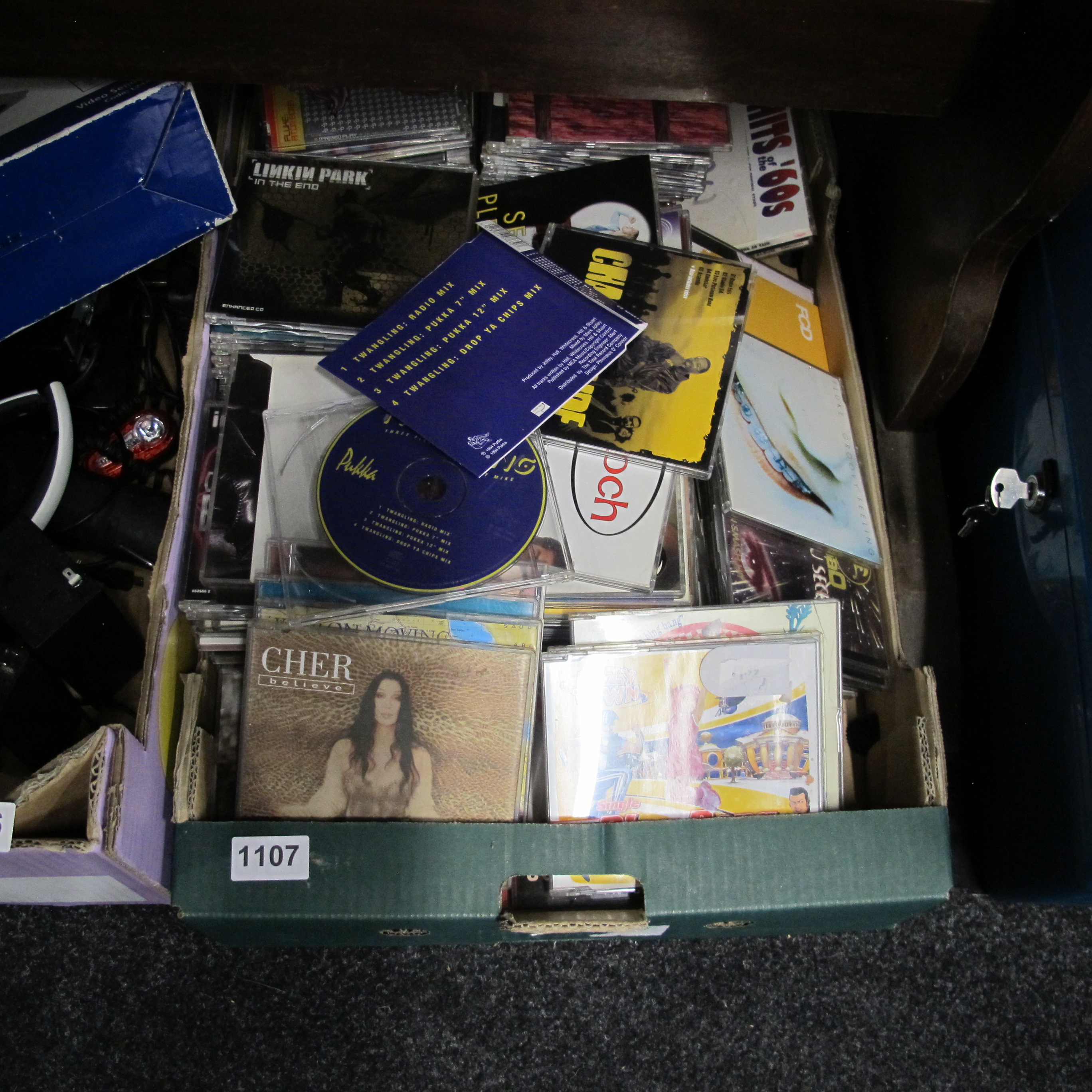 A Collection of Assorted Compact Discs and CD Singles, including Cher, Linkin Park, and ‘Hits of the 60s’