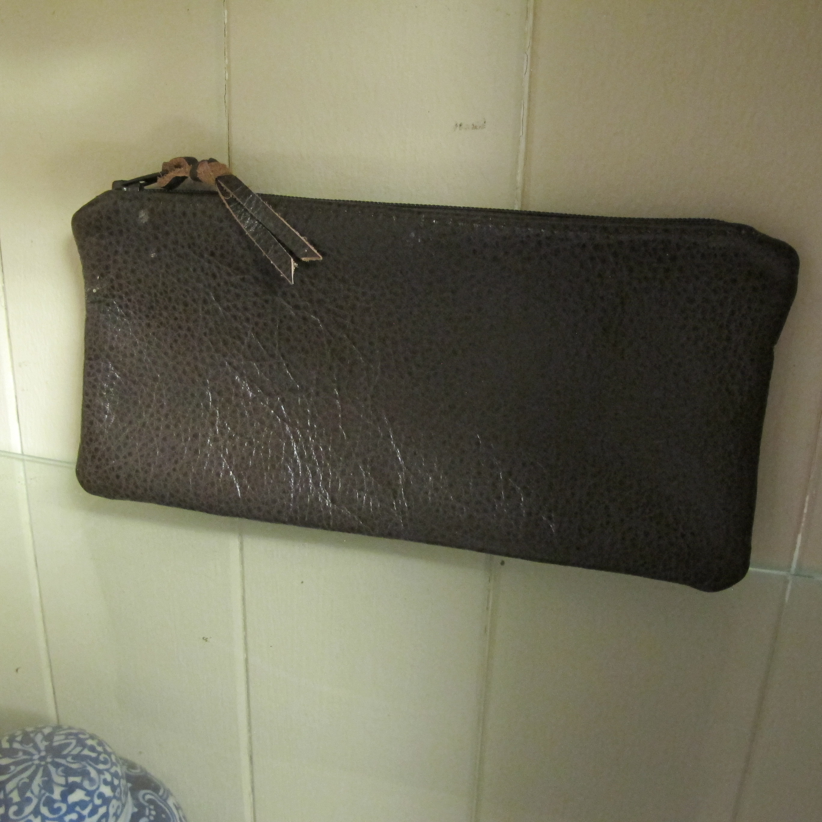 A Contemporary Dark Brown Pebbled Leather Zippered Clutch Pouch