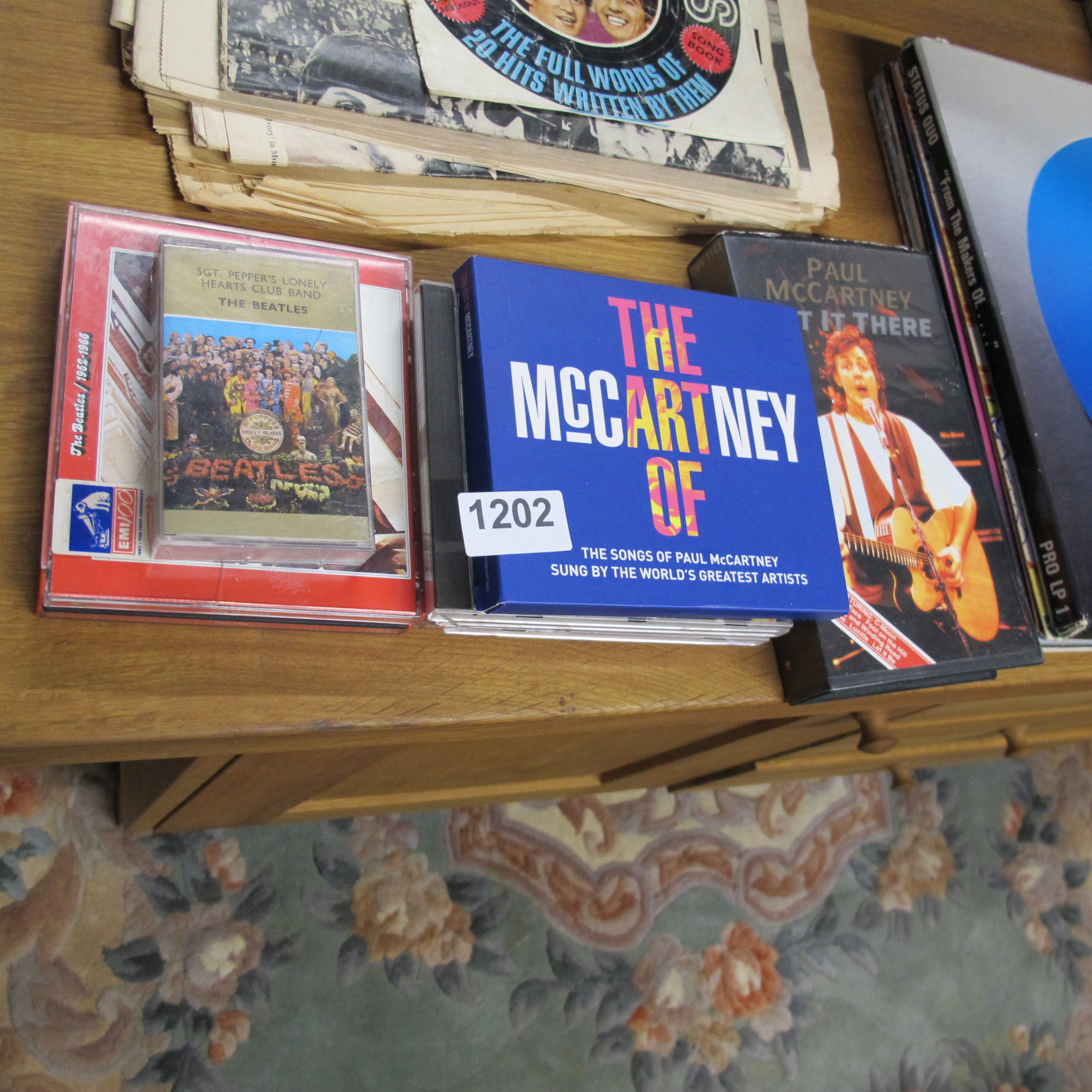 The Beatles – Sgt. Pepper’s Lonely Hearts Club Band Cassette Tape, A Collection of Paul McCartney Media, Status Quo Vinyl LPs, and Vintage Songbooks