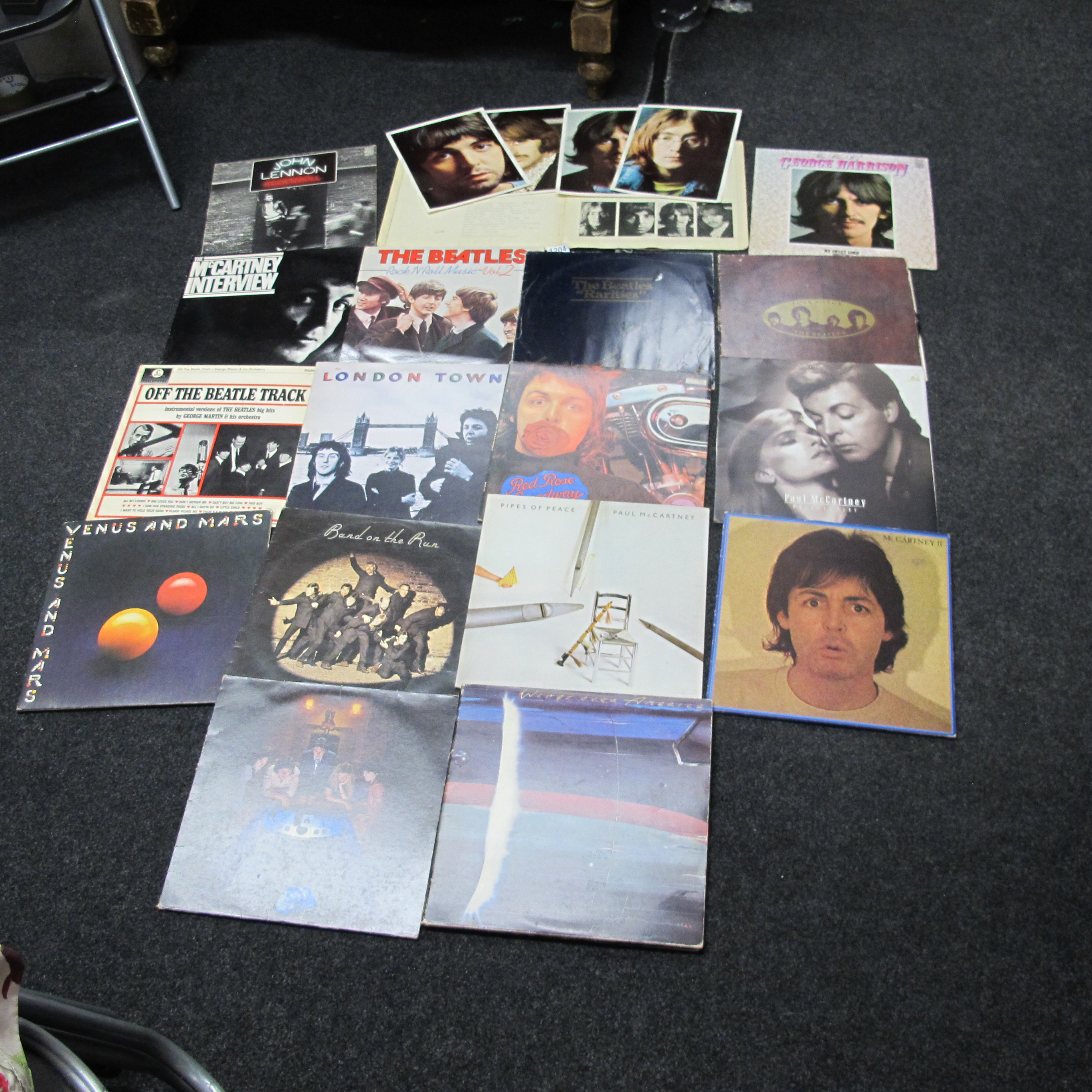 Collection of Beatles records including thw white double album