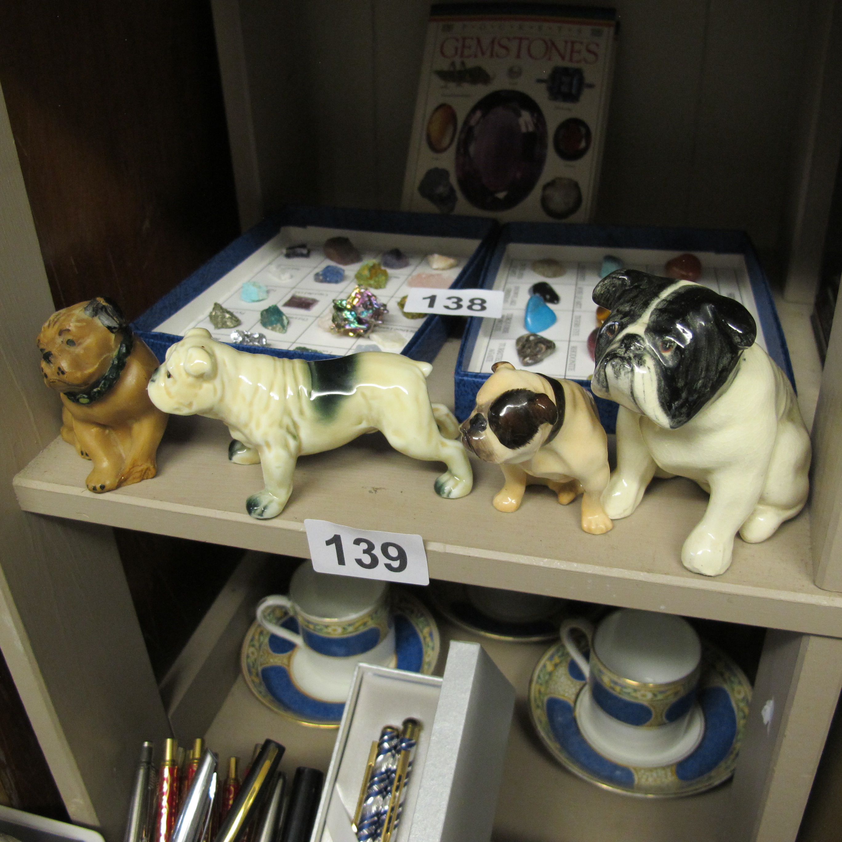 A Collection of Hand-Painted Porcelain bulldog Figurines including Royal Doulton one is wax