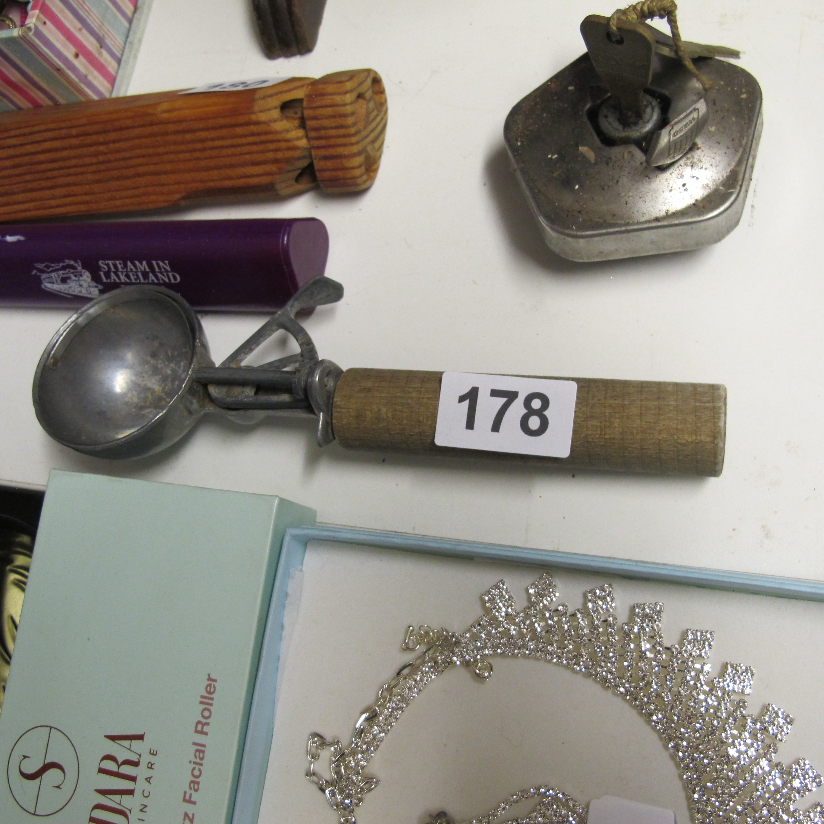 A Group of Miscellaneous Collectibles, including a Vintage Wood Handled Ice Cream Scoop