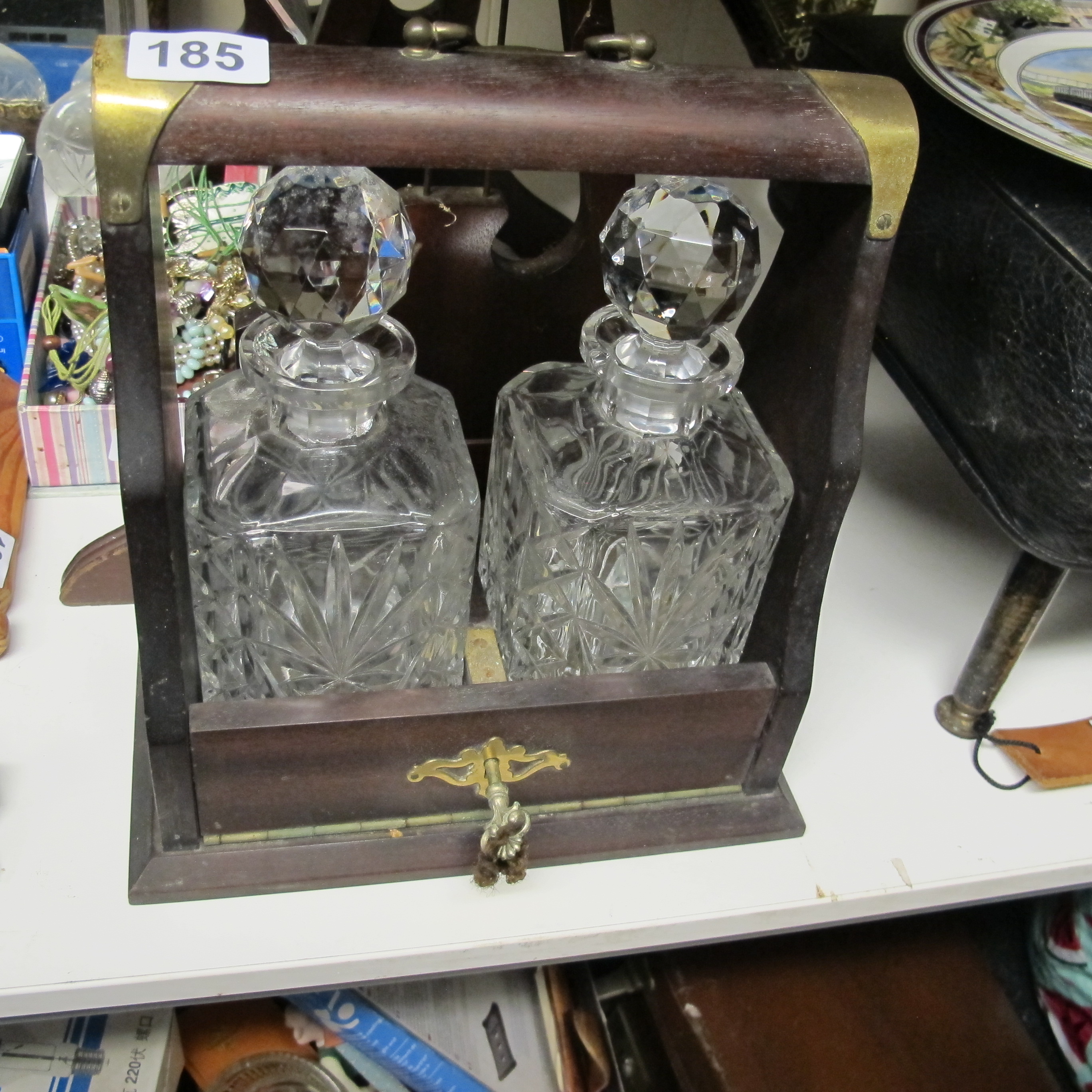 An Edwardian English Oak Tantalus with Two Cut Glass Decanters lockable