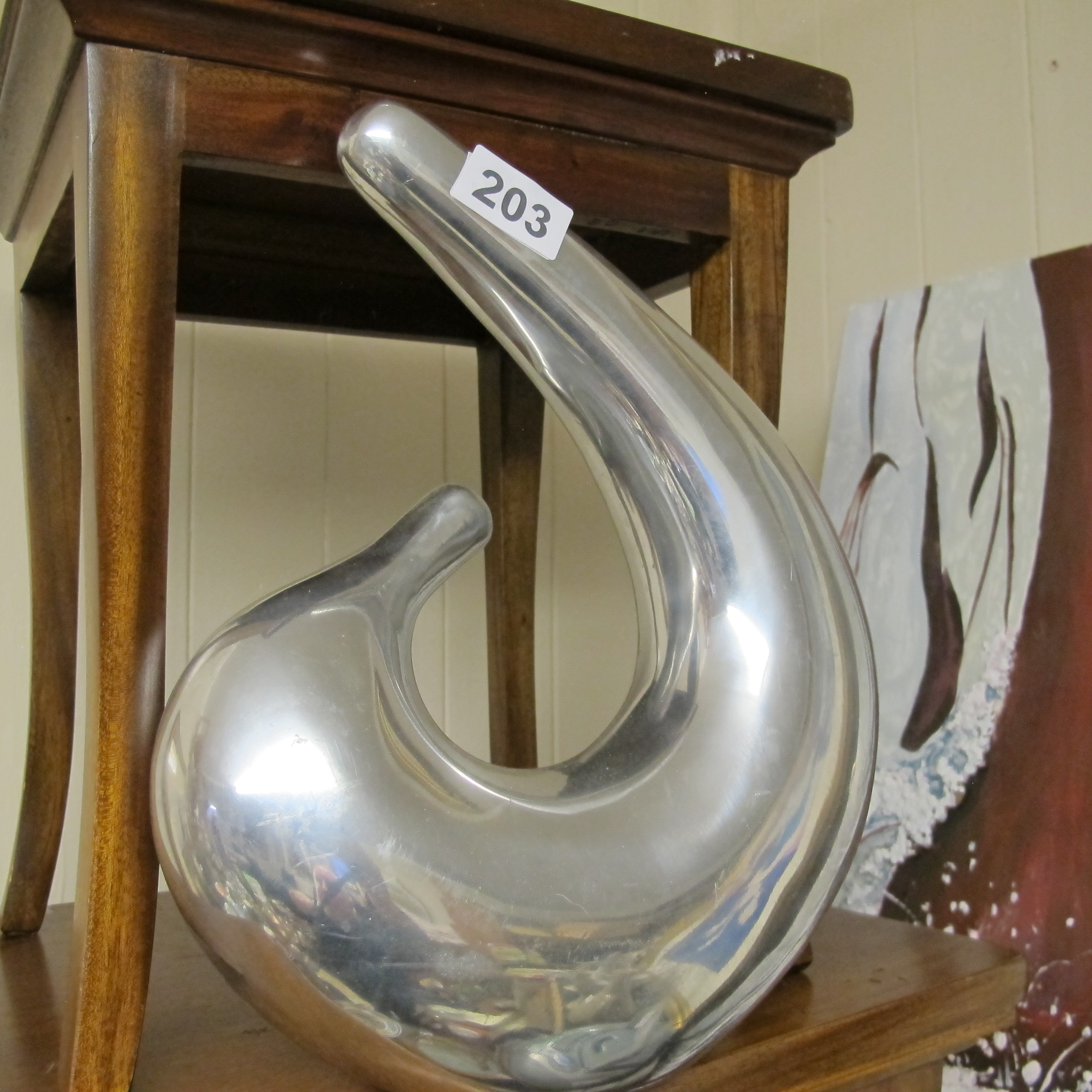 Modern Abstract Sculptural Object, Polished Silver-Toned Metal