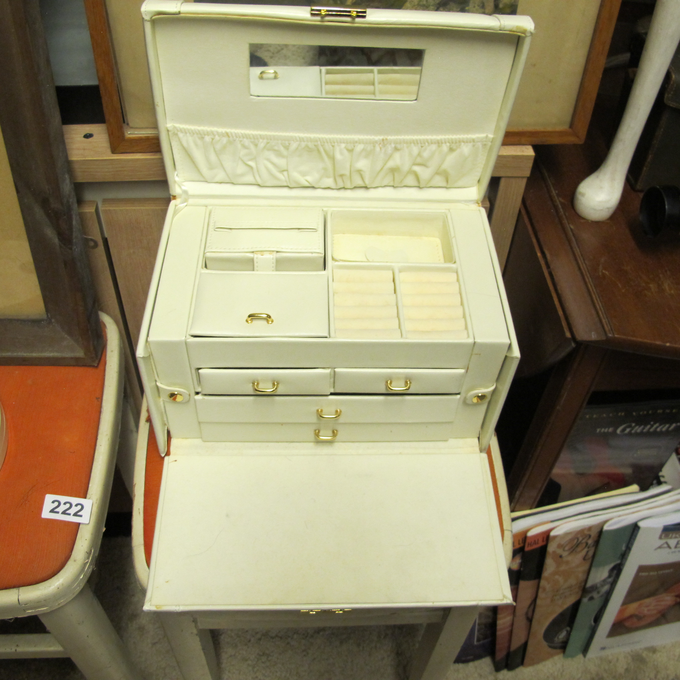 A Cream Faux Leather Multi-Tiered Jewelry and Vanity Box