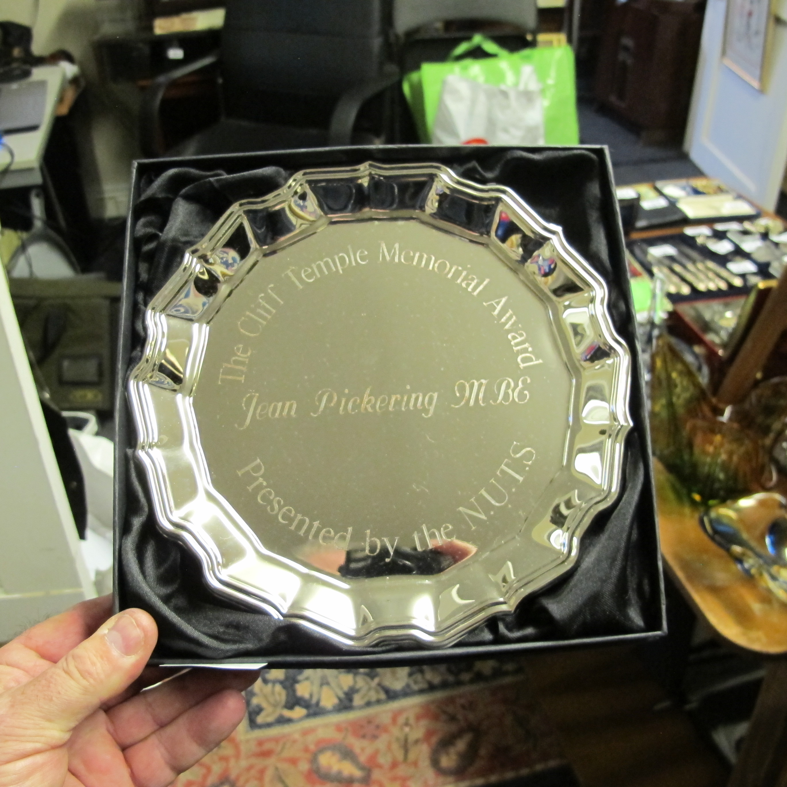 Chippendale Style Silver-toned Presentation Salver, Engraved